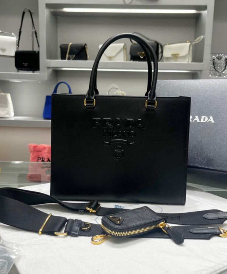 Borsa Prada Monochrome in Saffiano nera 21 cm
