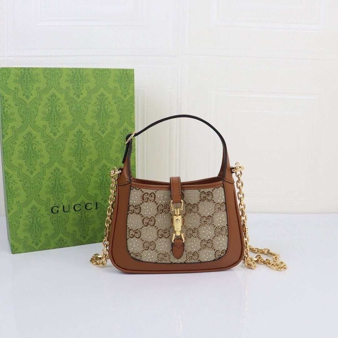 Borsa Gucci Jackie 1961 Mini in tela GG Supreme e pelle marrone 19 cm