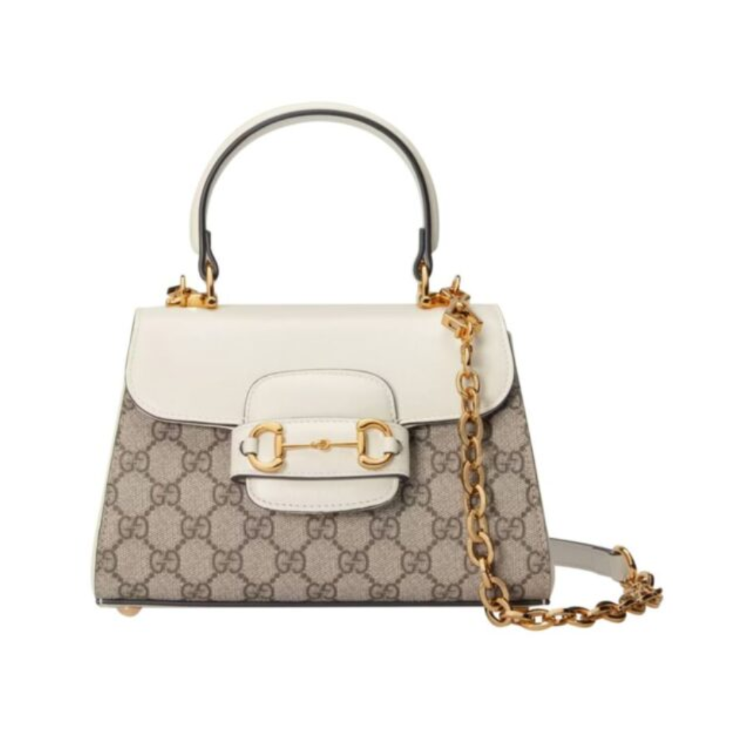 Borsa Gucci Horsebit 1955 mini crema/monogramma 22 cm
