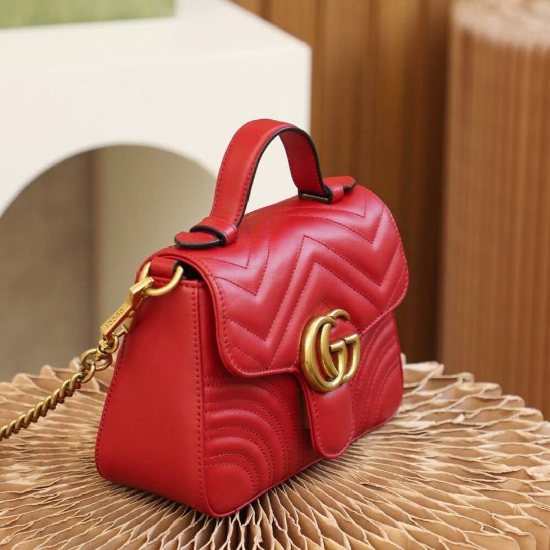 Borsa Gucci GG Marmont top handle in pelle rossa 20 cm