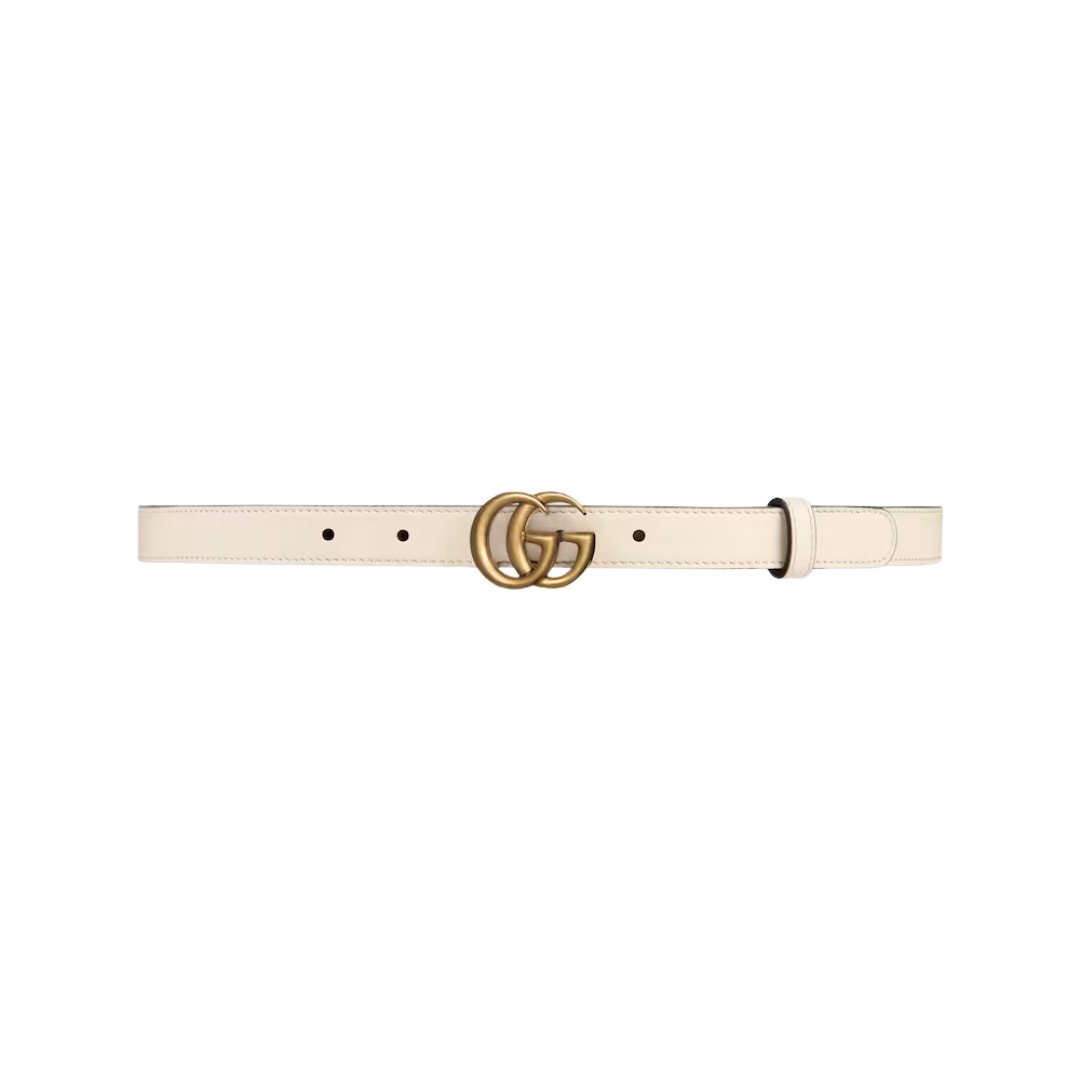 Cintura Gucci Marmont sottile in pelle bianca 2 cm
