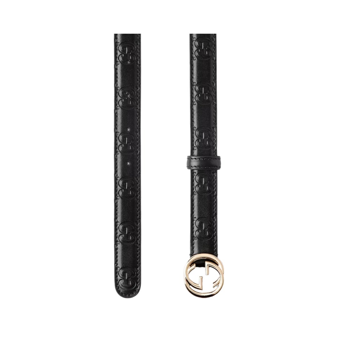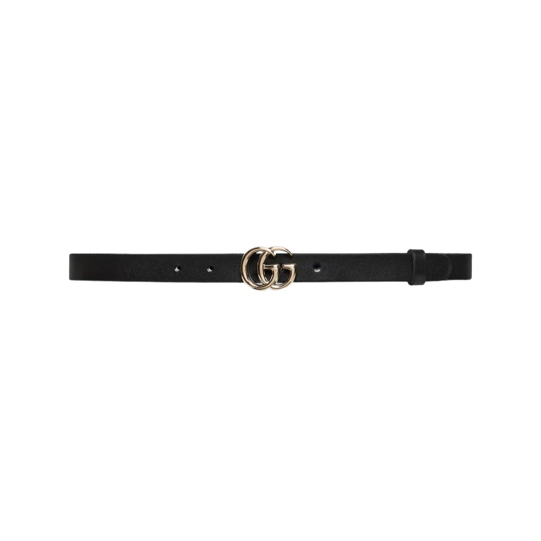 Dettagli:● Materiale: Pelle liscia● Colore: Nero● Chiusura: Fibbia GG● Logo: GG dorato● Altezza cintura: 2 cm● Parti metalliche: Dorate