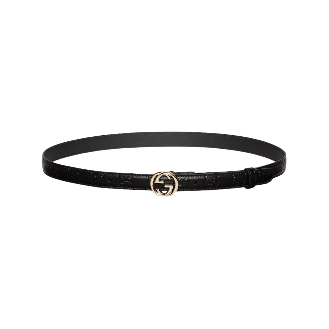 Dettagli:● Materiale: Pelle liscia● Colore: Nero● Chiusura: Fibbia GG intrecciata● Logo: GG dorato● Altezza cintura: 2 cm● Reversibile: No● Parti