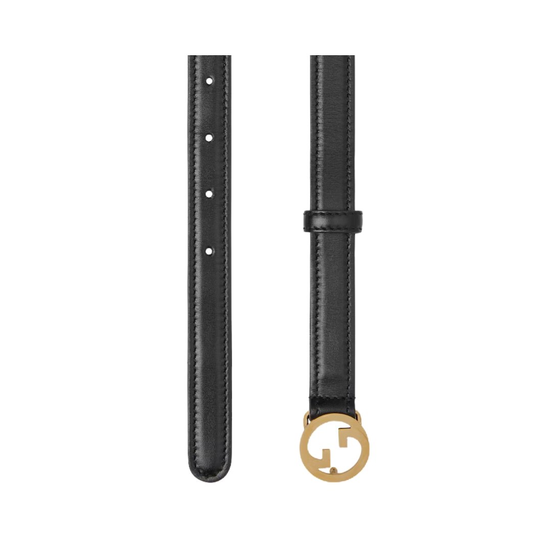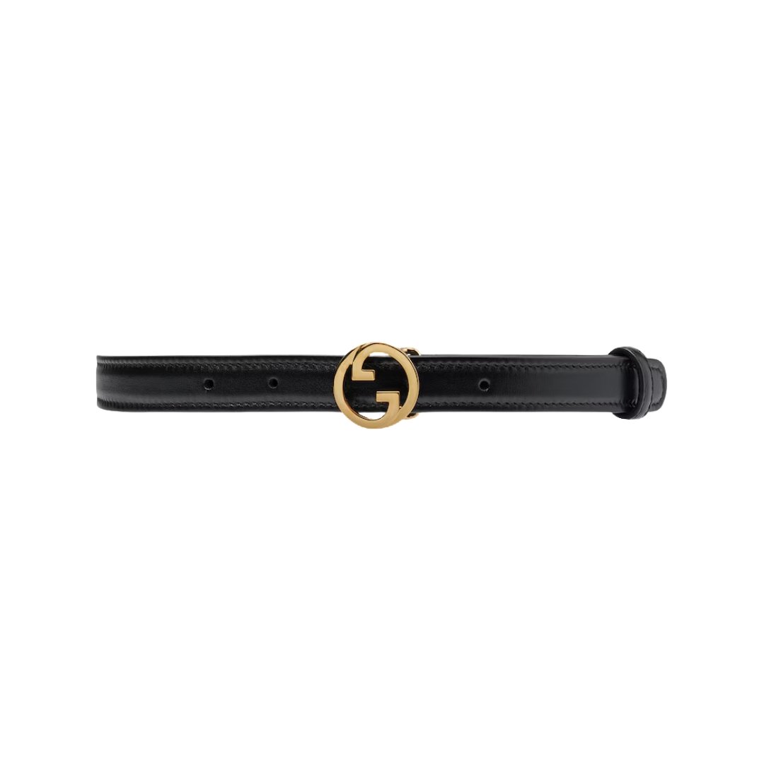 Cintura Gucci Blondie in pelle nera sottile 2 cm