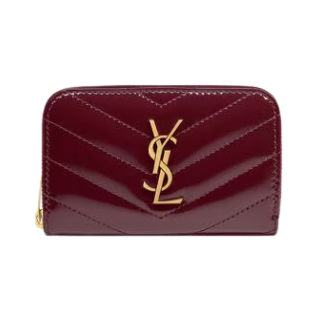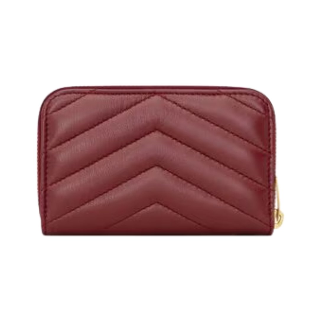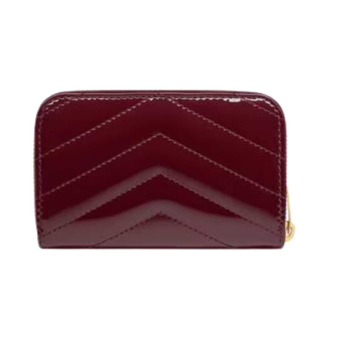 Dimensioni:● Larghezza: 11 cm● Altezza: 8.5 cm● Profondità: 2 cm Dettagli:● Materiale: pelle di agnello● Colore: rosso bordeaux● Chiusura: zip