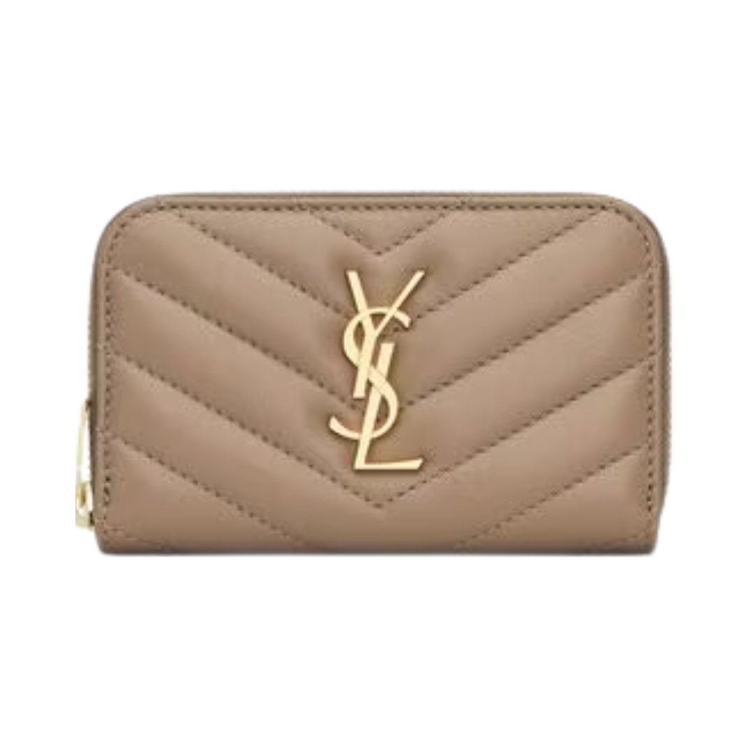 Dimensioni:● Larghezza: 11 cm● Altezza: 8.5 cm● Profondità: 2 cm Dettagli:● Materiale: pelle di agnello● Colore: beige chiaro● Chiusura: zip