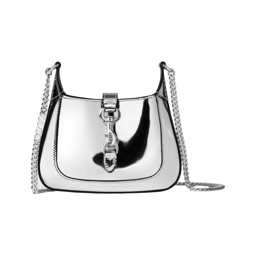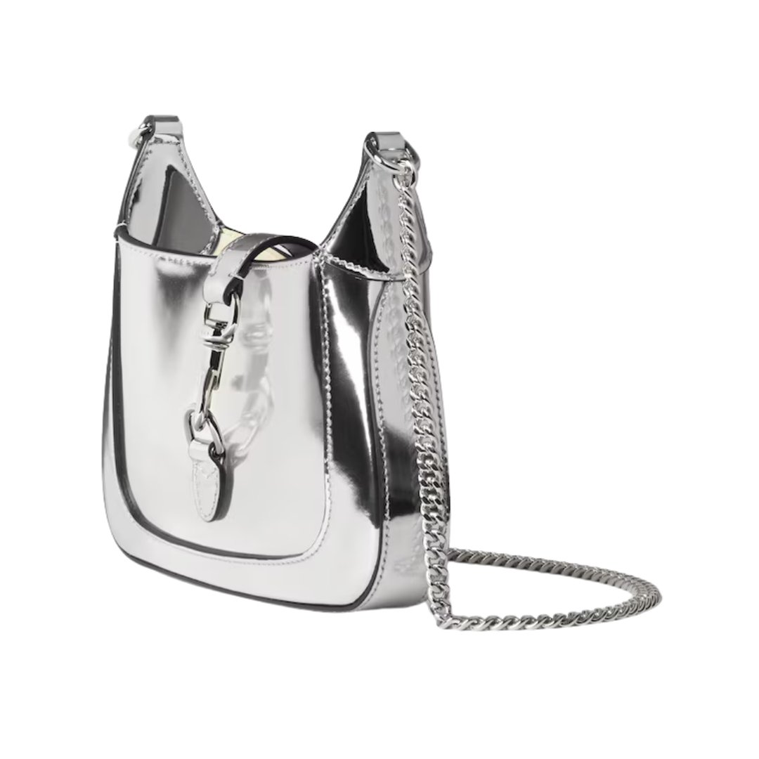 Borsa Gucci Jackie Notte mini in pelle metallizzata argento 19.5 cm