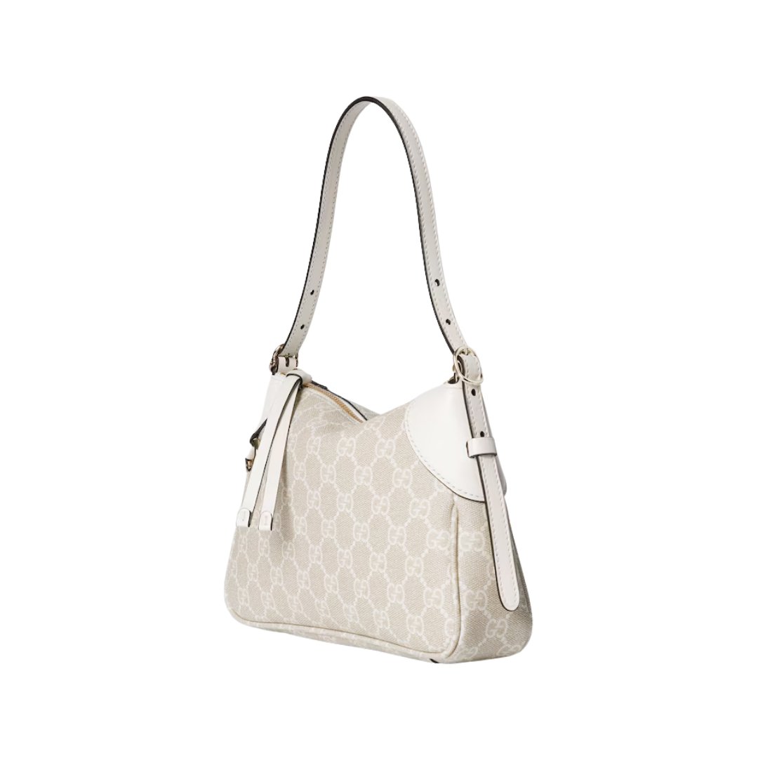 Borsa Gucci GG Emblem in tessuto GG beige e pelle bianca 24.5 cm