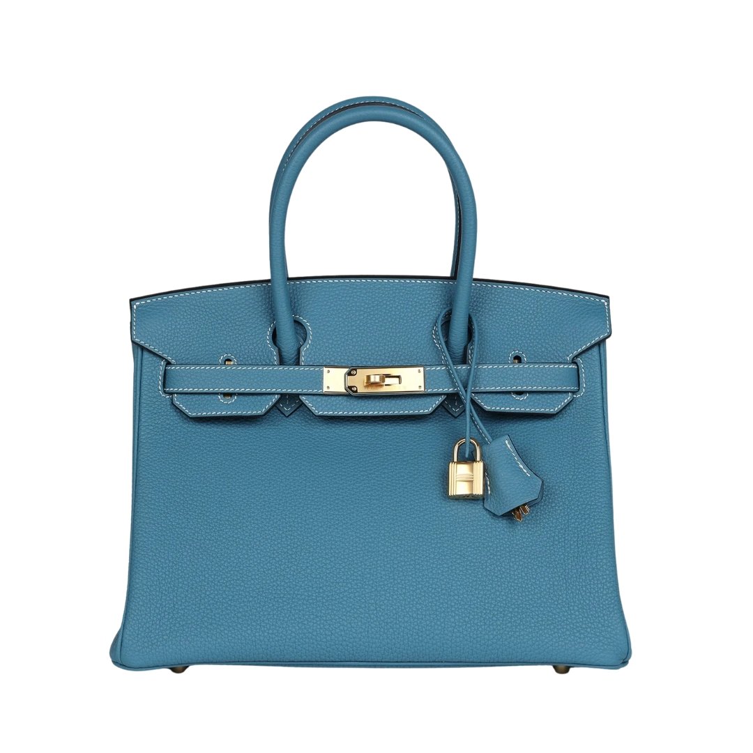 Borsa Hermès Birkin 30 in pelle Togo Blue Jean con finiture dorate