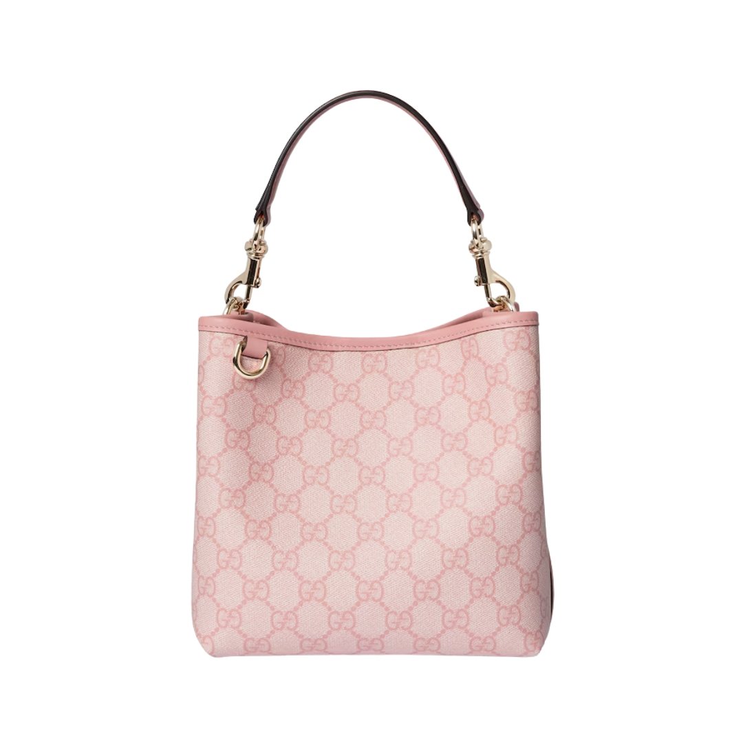 Borsa Gucci mini secchiello GG Emblem in pelle rosa chiaro 19 cm