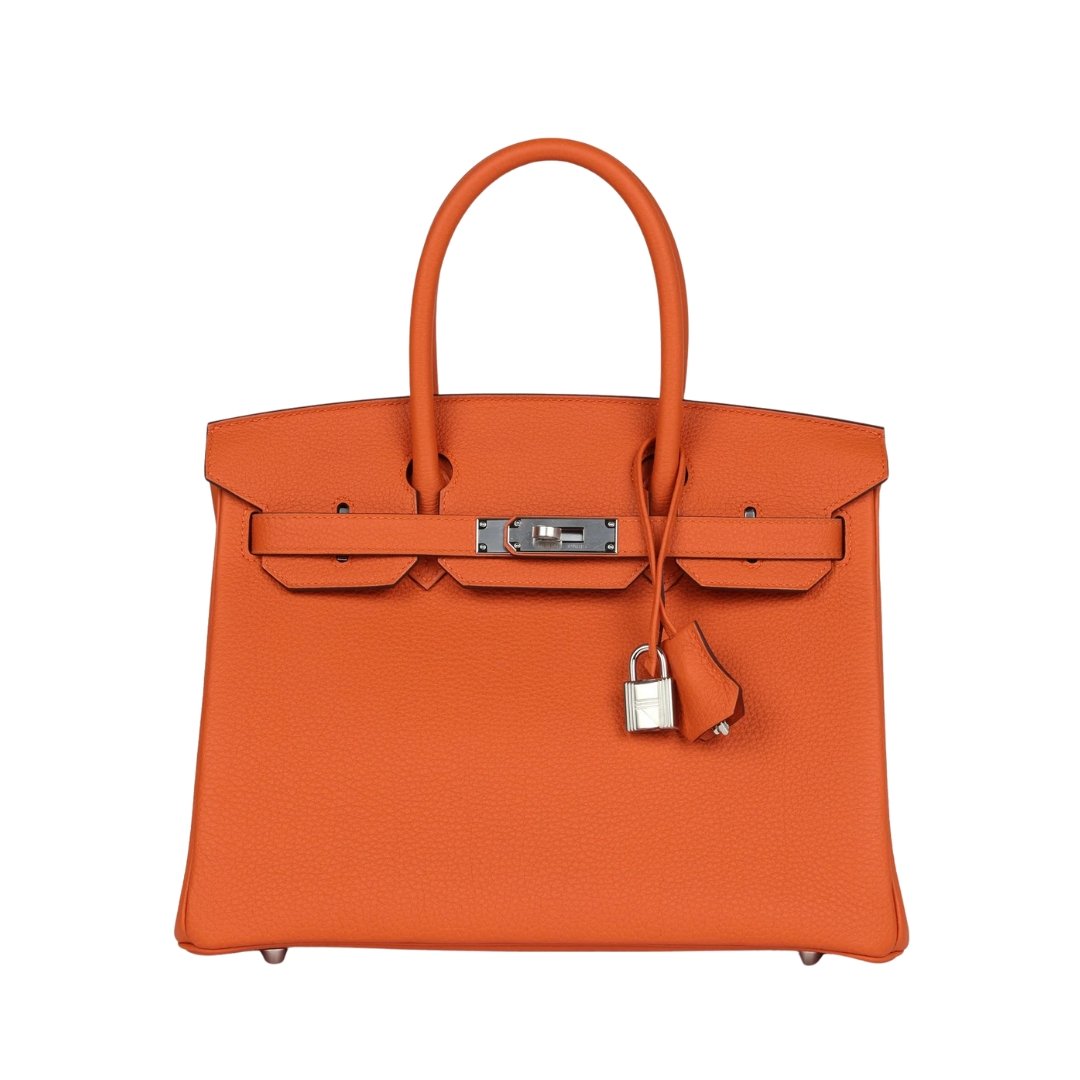 Borsa Hermès Birkin 30 in pelle Togo arancione con hardware in palladio
