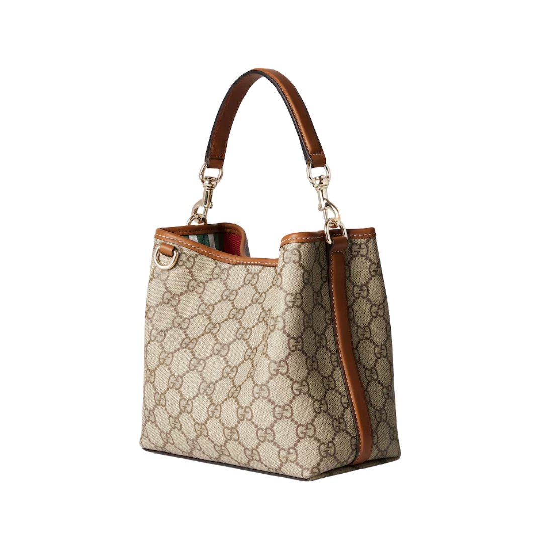 Dimensioni:● Larghezza: 19 cm● Altezza: 19 cm● Profondità: 11 cm Dettagli:● Materiale: Tela GG Supreme● Colore: Beige ed ebano● Chiusura: