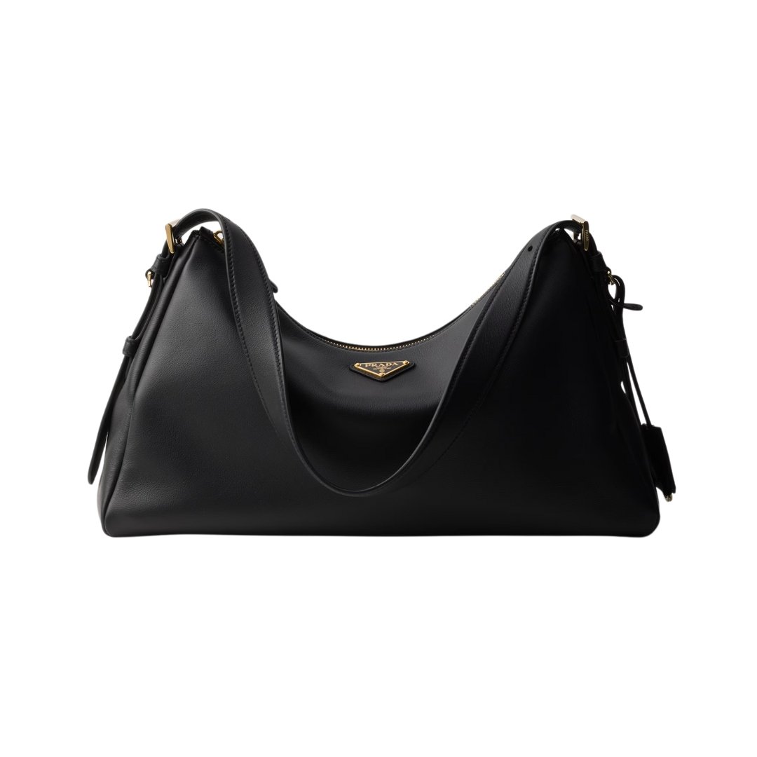 Borsa Prada Aimée grande a spalla in pelle nera 23 cm