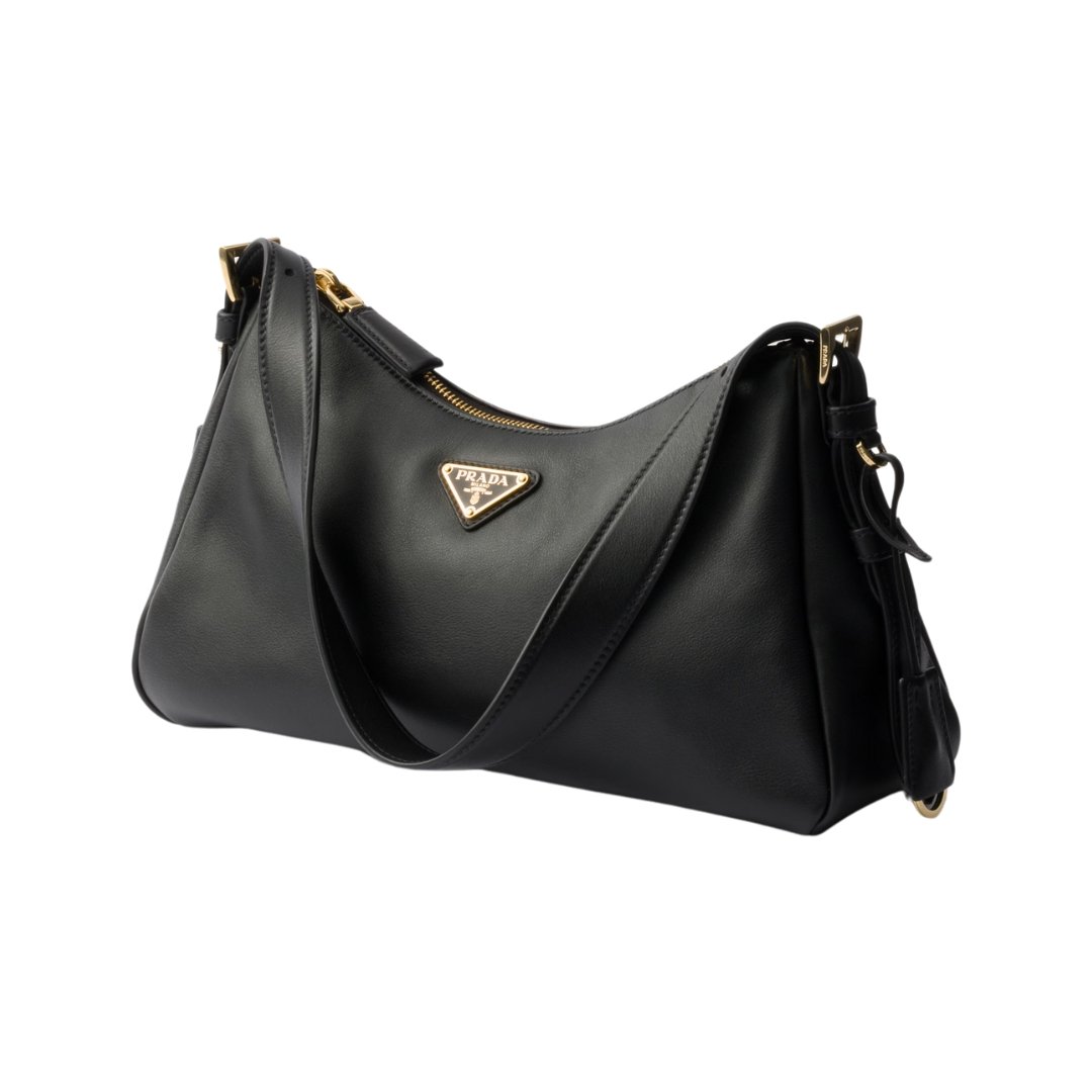 Borsa Prada Aimée media a spalla in pelle nera 18 cm