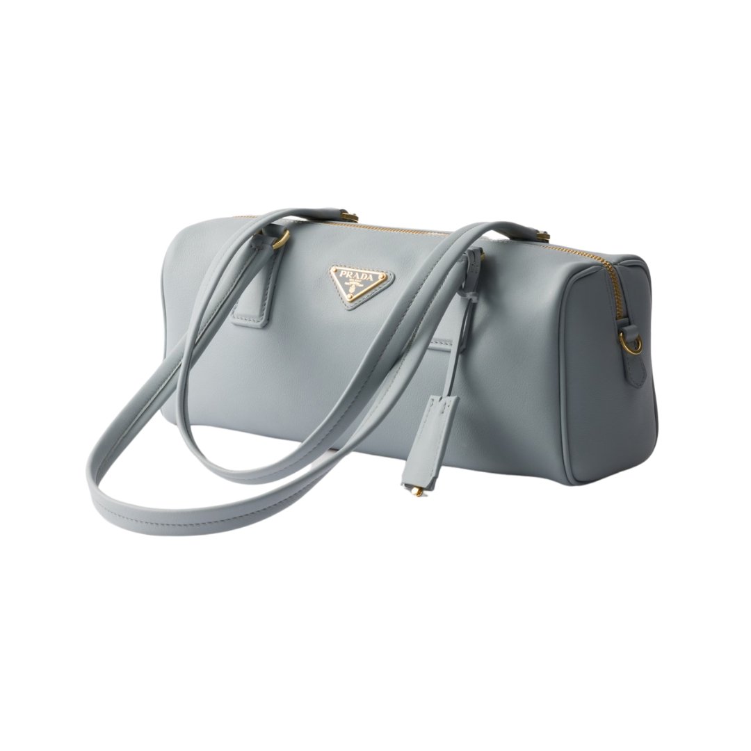 Borsa Prada con manico e lucchetto in pelle grigio ghiaccio 12.5 cm