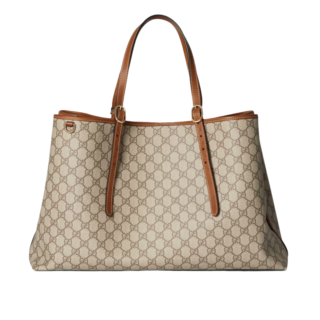 Borsa Gucci shopper GG Emblem grande beige e cuoio 45,5 cm