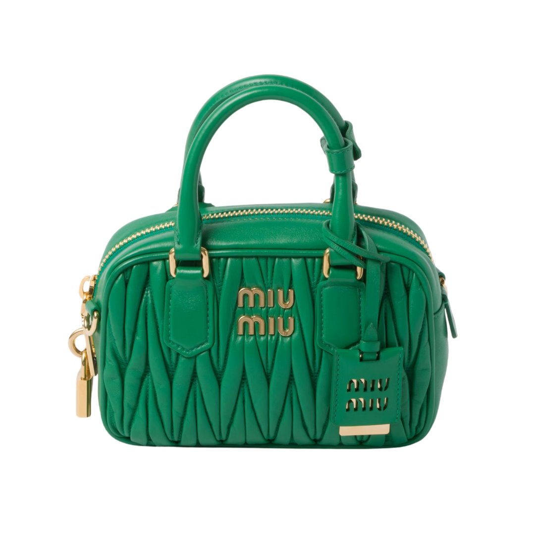 Miu Miu Borsa Arcadie Matelassé in nappa verde 10,3 cm