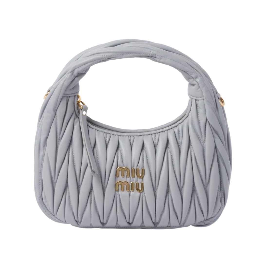 Miu Miu Borsa Hobo in nappa matelassé grigio perla 20 cm