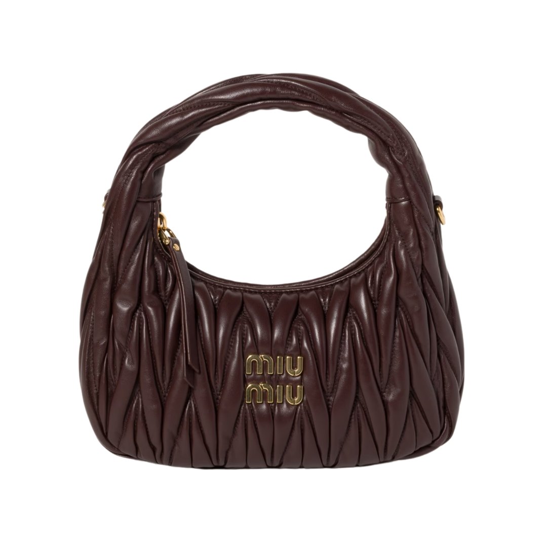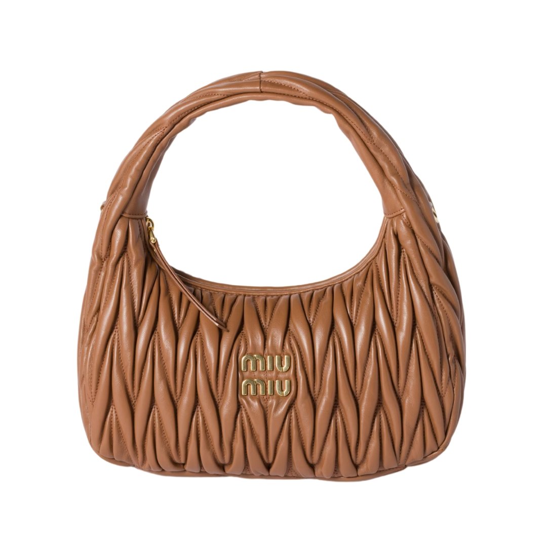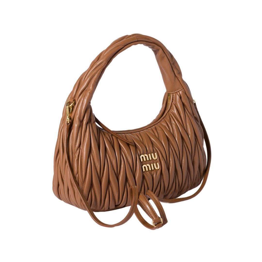 Miu Miu Borsa Hobo in nappa matelassé color briarwood 20 cm