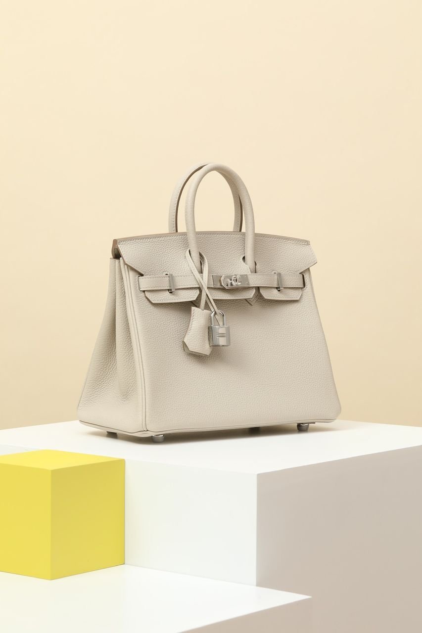 Borsa Hermès Birkin 25 in pelle Togo Craie