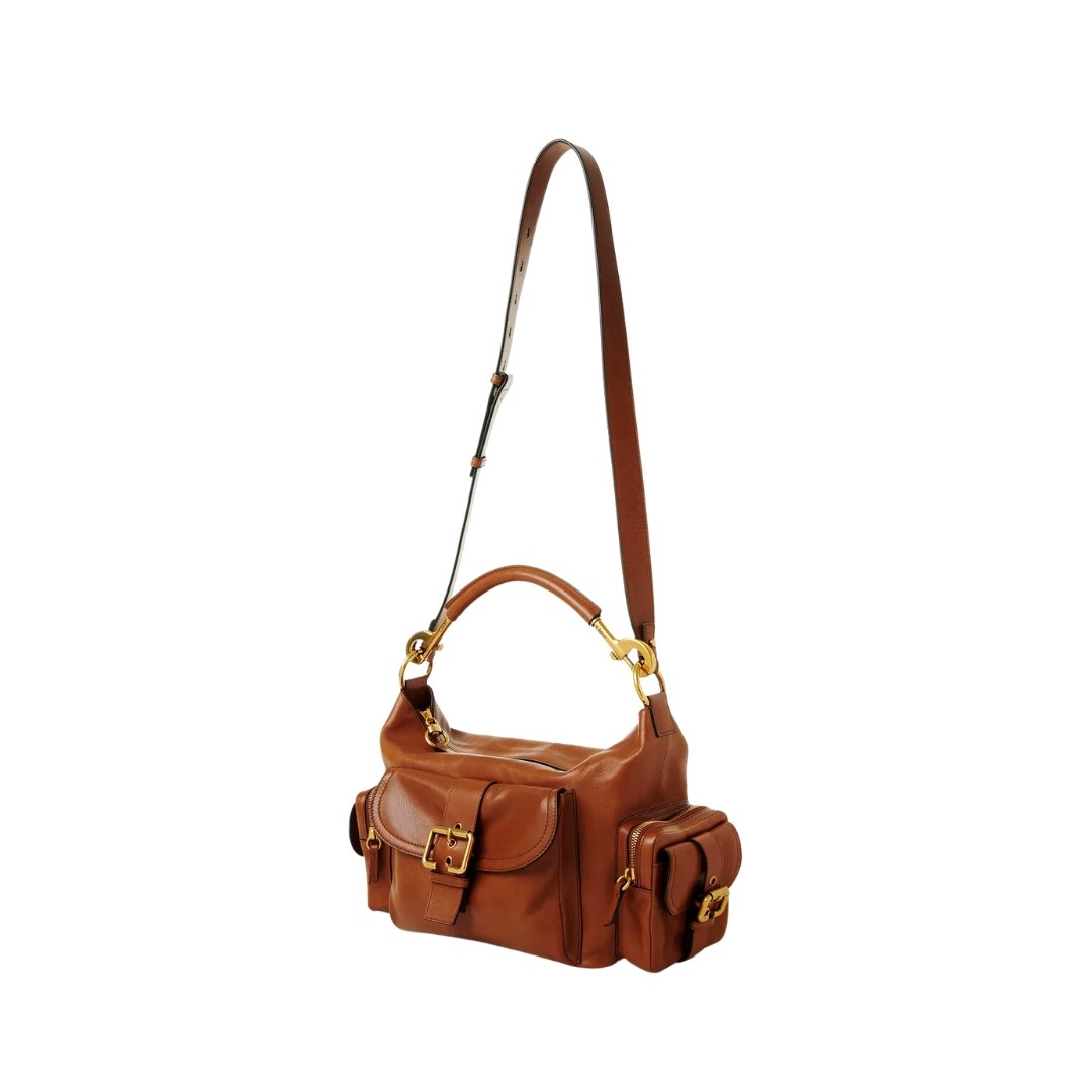 Dimensioni:● Larghezza: 34 cm● Altezza: 16 cm● Profondità: 10 cm Dettagli:● Materiale: Pelle lucida● Colore: Cognac● Chiusura: Patta con fibbia