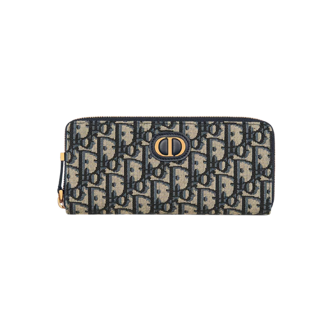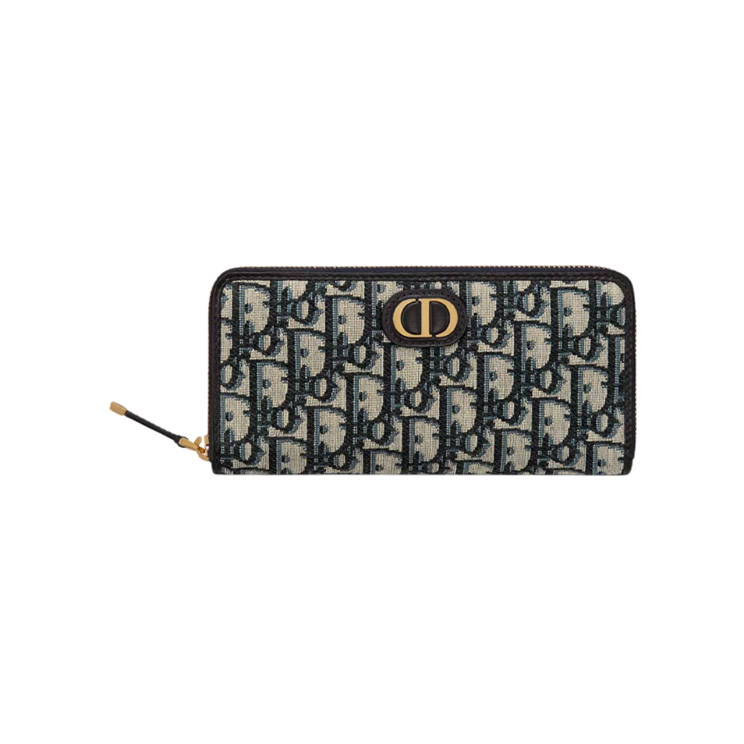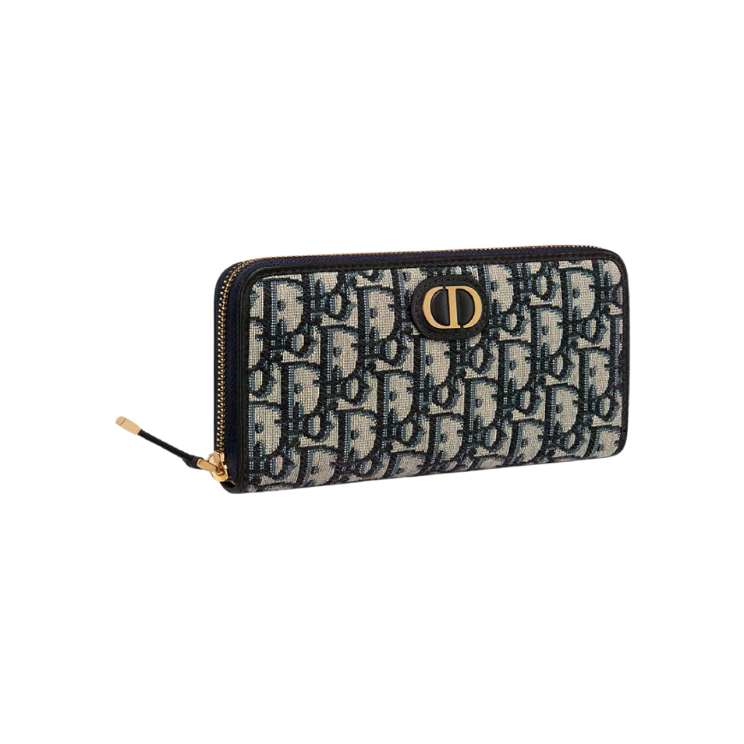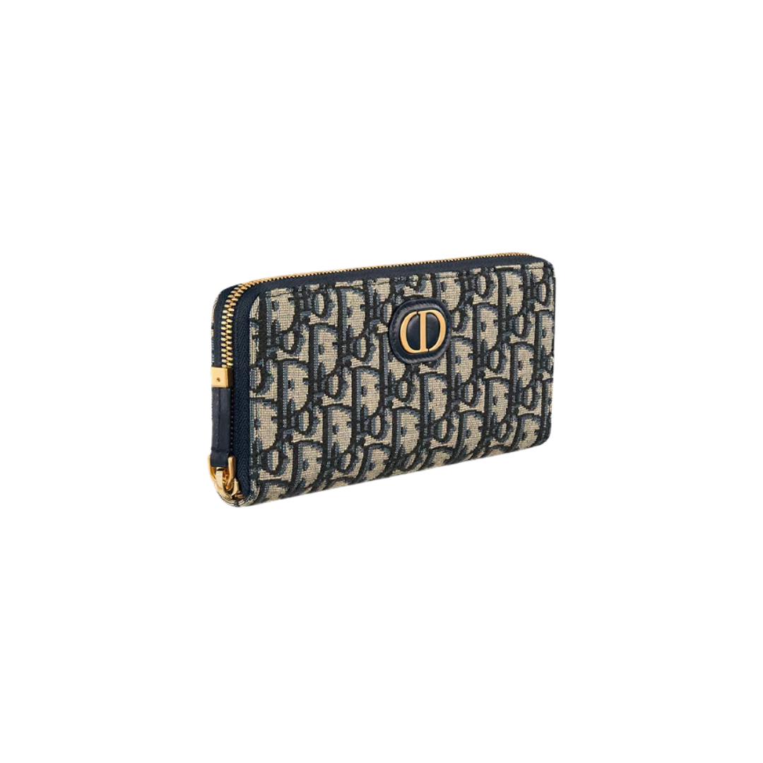 Portafoglio lungo Dior 30 Montaigne Voyageur in jacquard blu