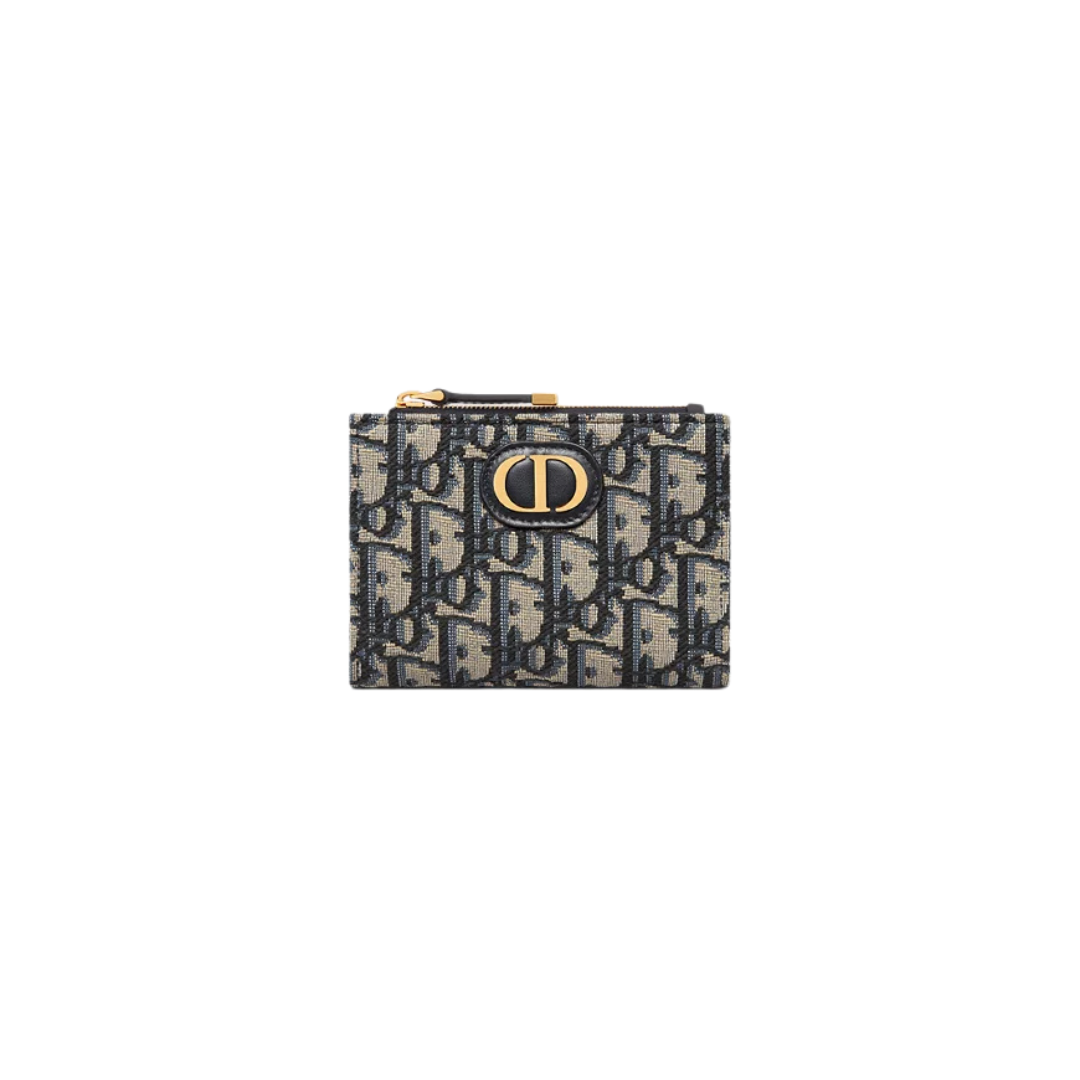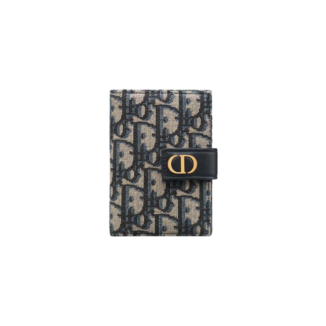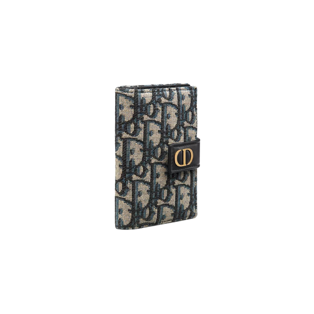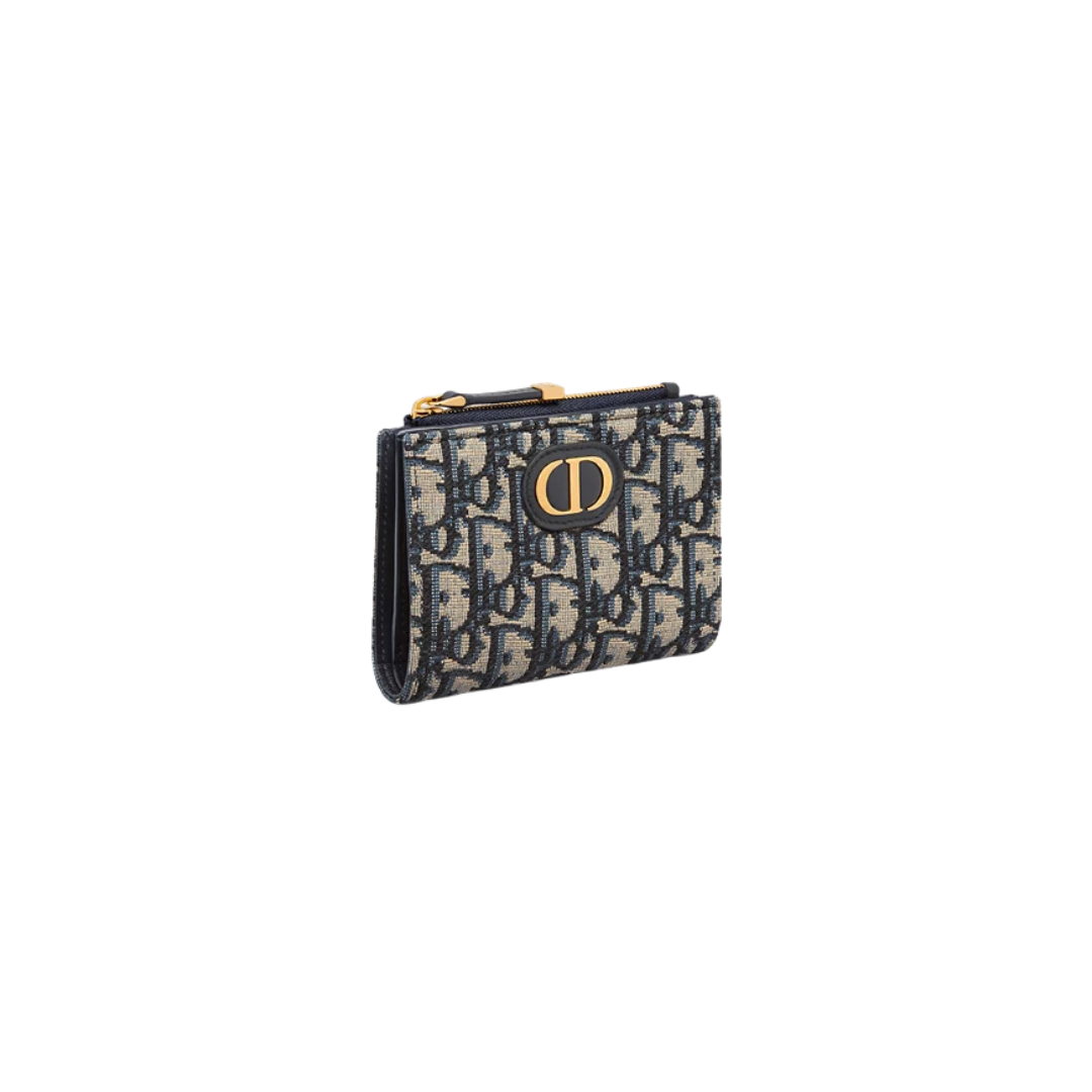 Portafoglio compatto Dior 30 Montaigne Voyageur in jacquard blu