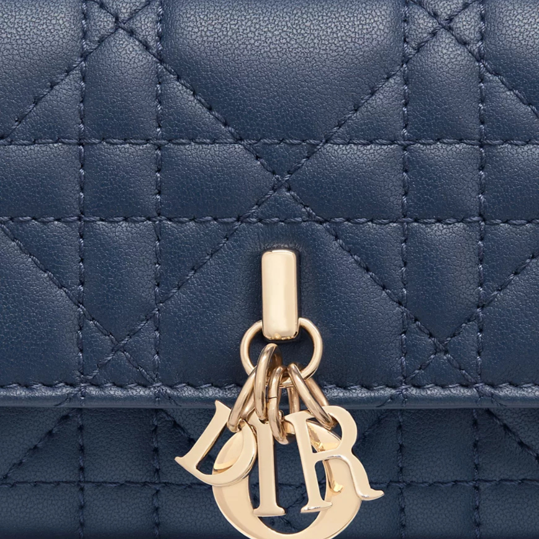 Portafoglio Dior Saddle Lotus in pelle blu navy