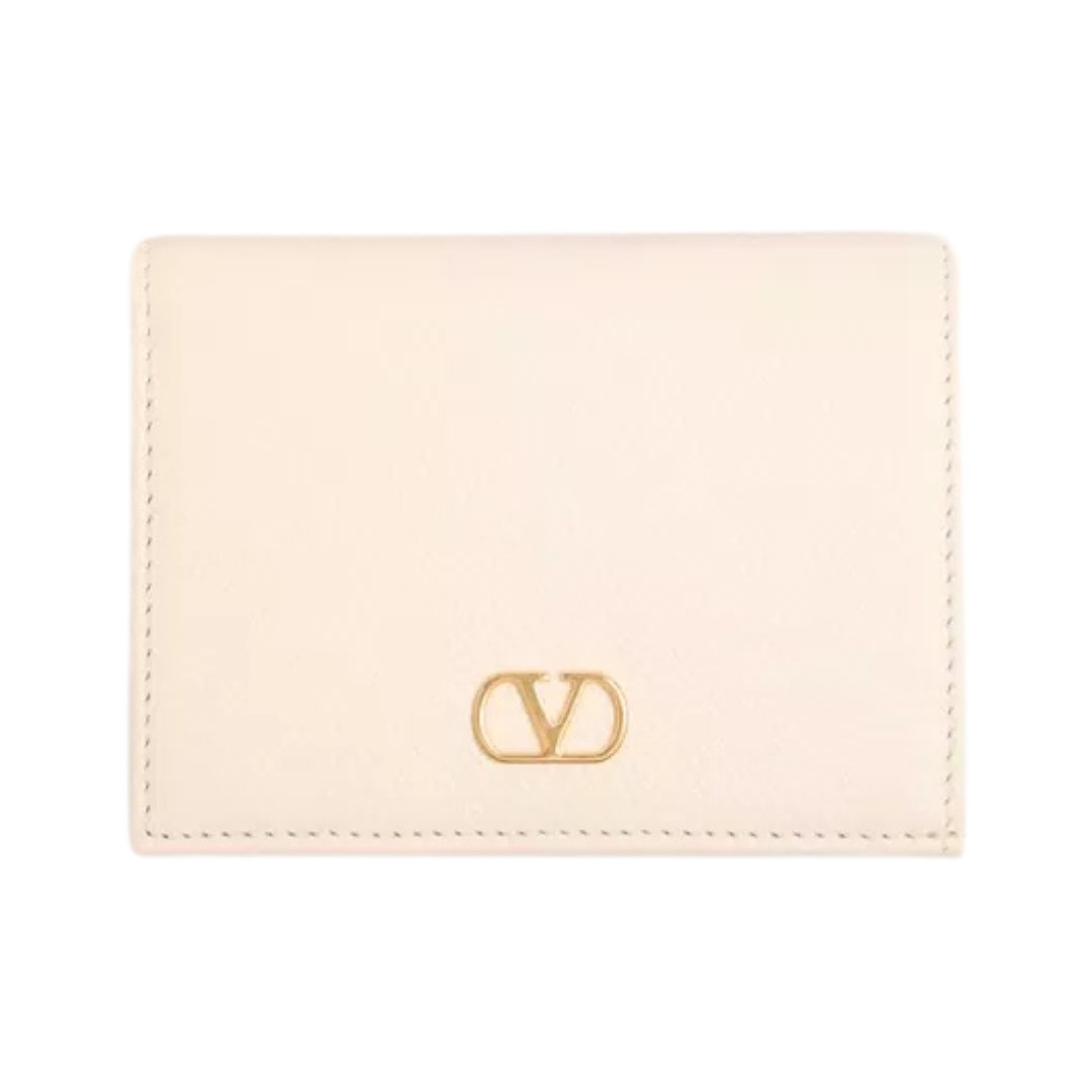 Portafoglio Valentino VLogo in pelle martellata avorio chiaro 11,5 cm