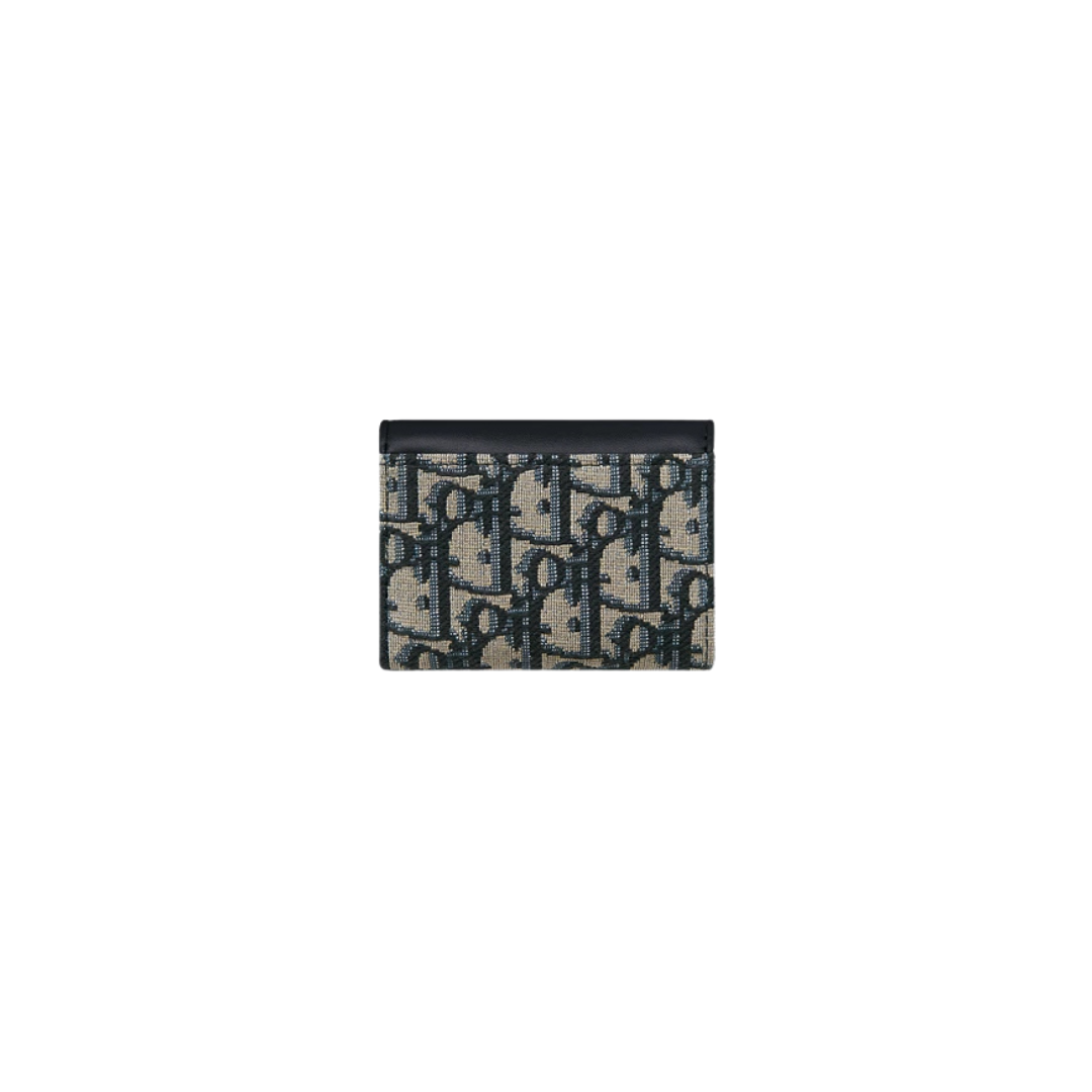 Portacarte Dior in jacquard blu Oblique e pelle di vitello