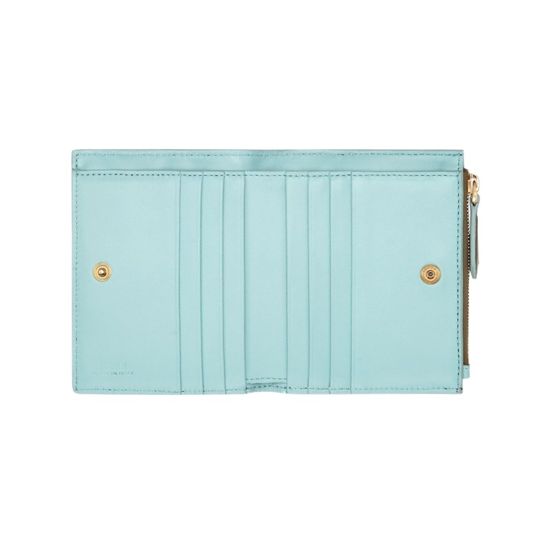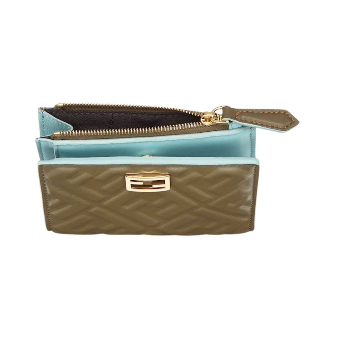 Portafoglio Fendi in nappa verde con motivo FF 9.5 cm