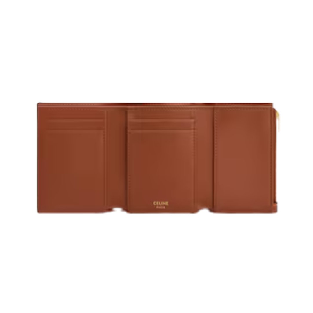 Portafoglio sottile Celine Victoire in pelle marrone 10.5 cm