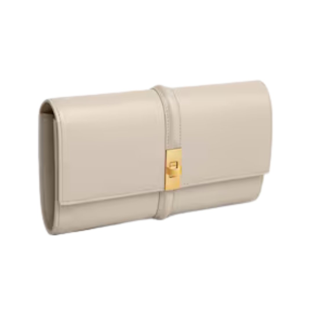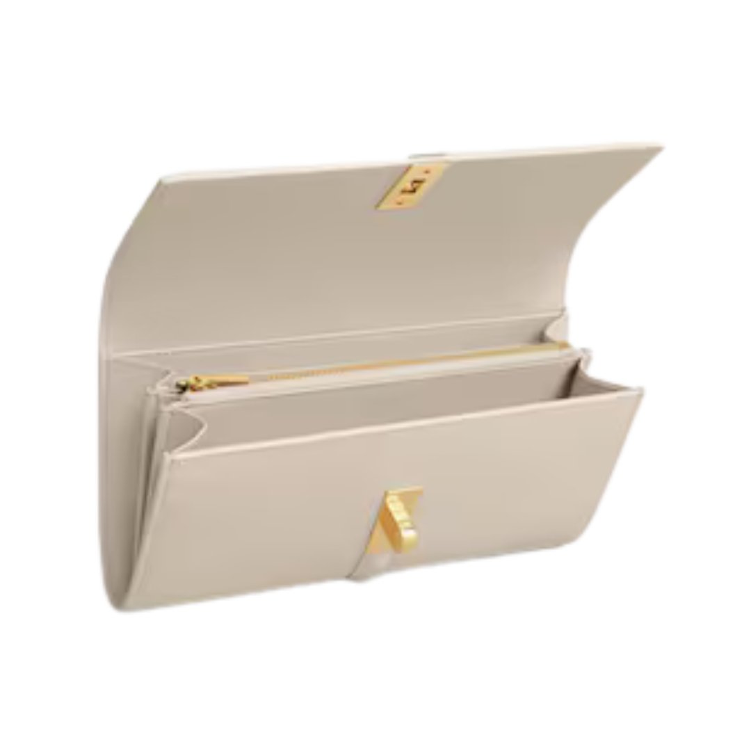 Portafoglio grande Celine in pelle satinata panna 19 cm