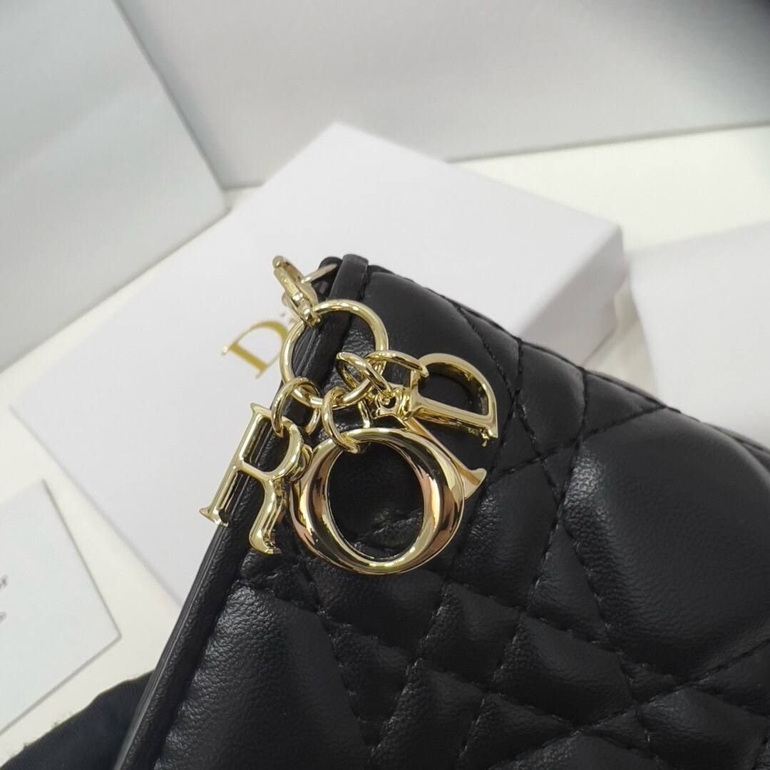 Portafoglio Dior Lady Dior compatto in pelle nera 10,5 cm