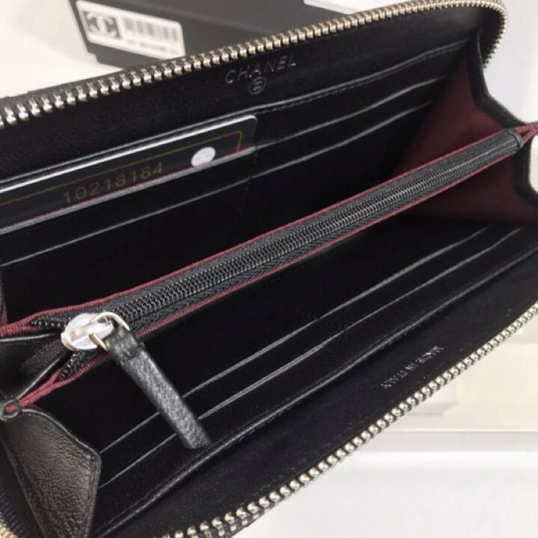 ● Interno: Slot per carte, zip interna, tasche per banconote