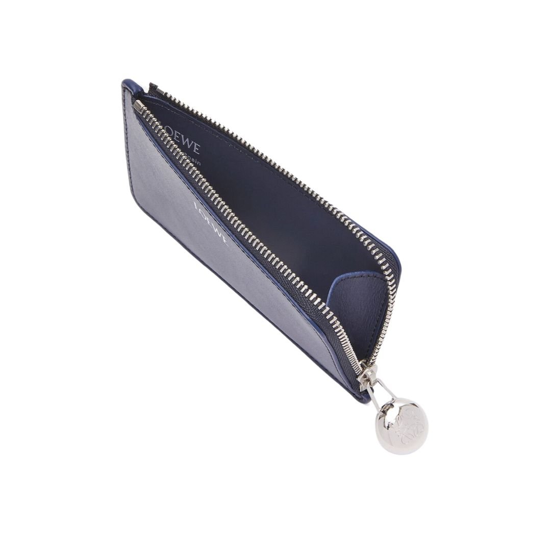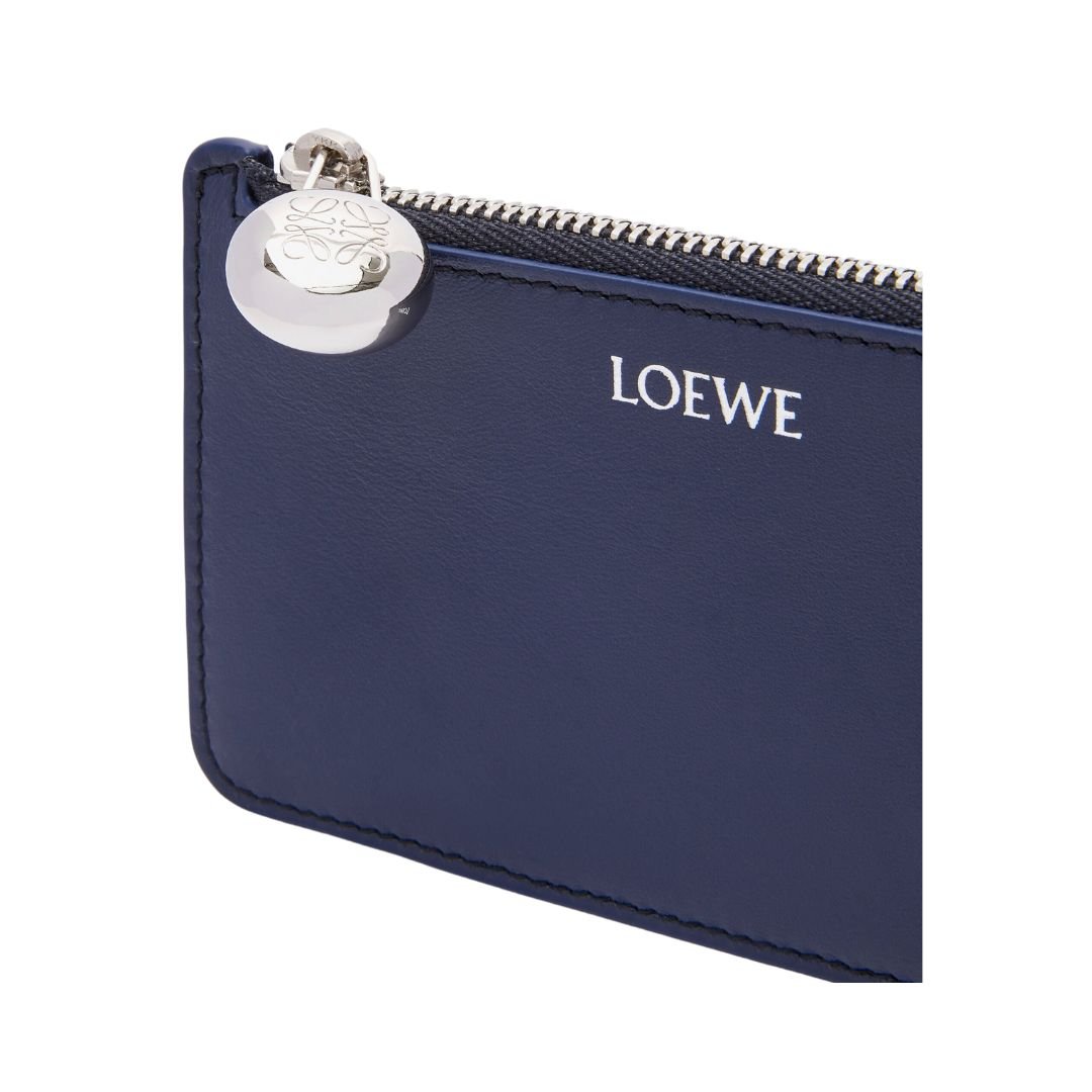 Portacarte con portamonete Pebble in nappa lucida blu navy 7,5 cm