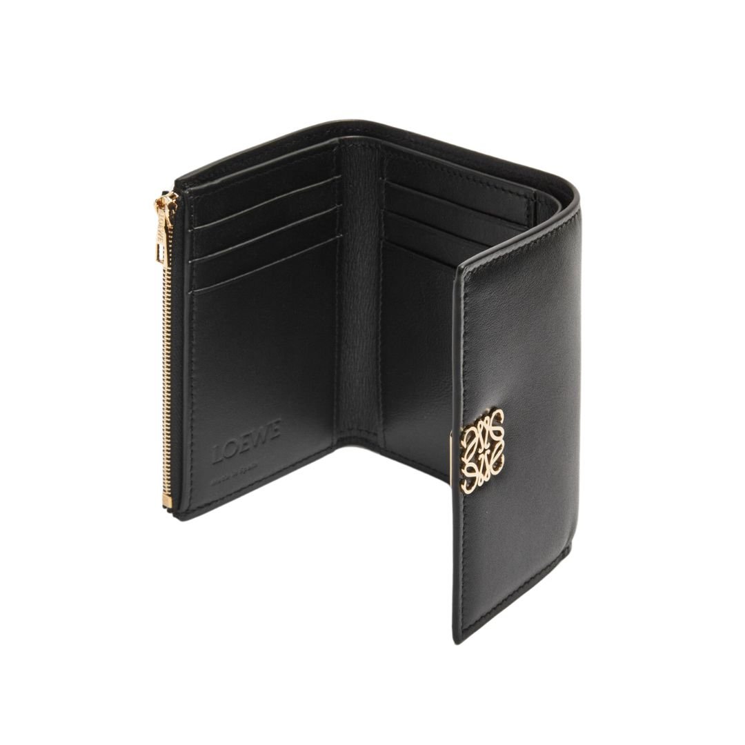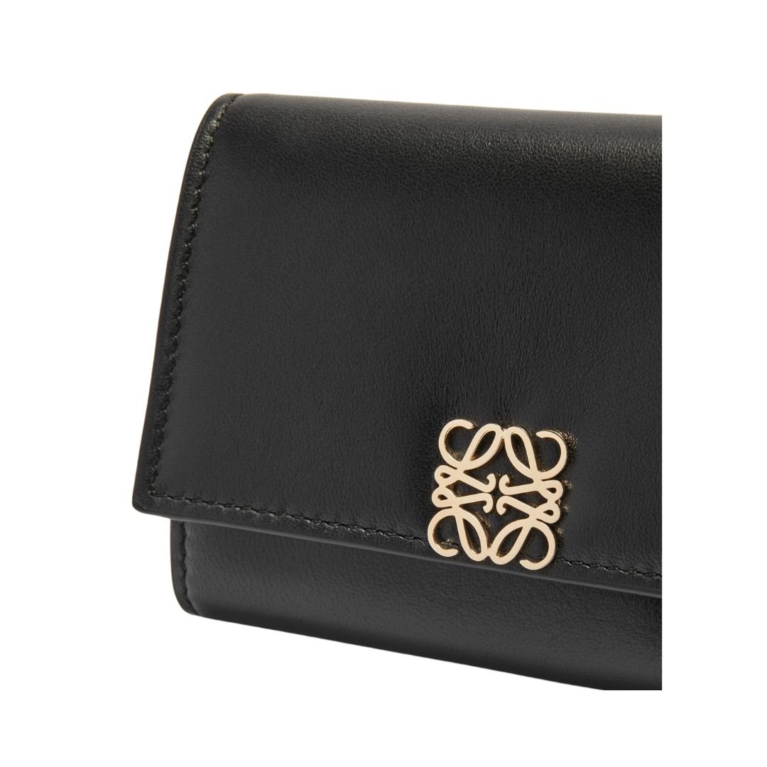 Portafoglio verticale piccolo Puffer Anagram in nappa lucida nera 8,2 cm