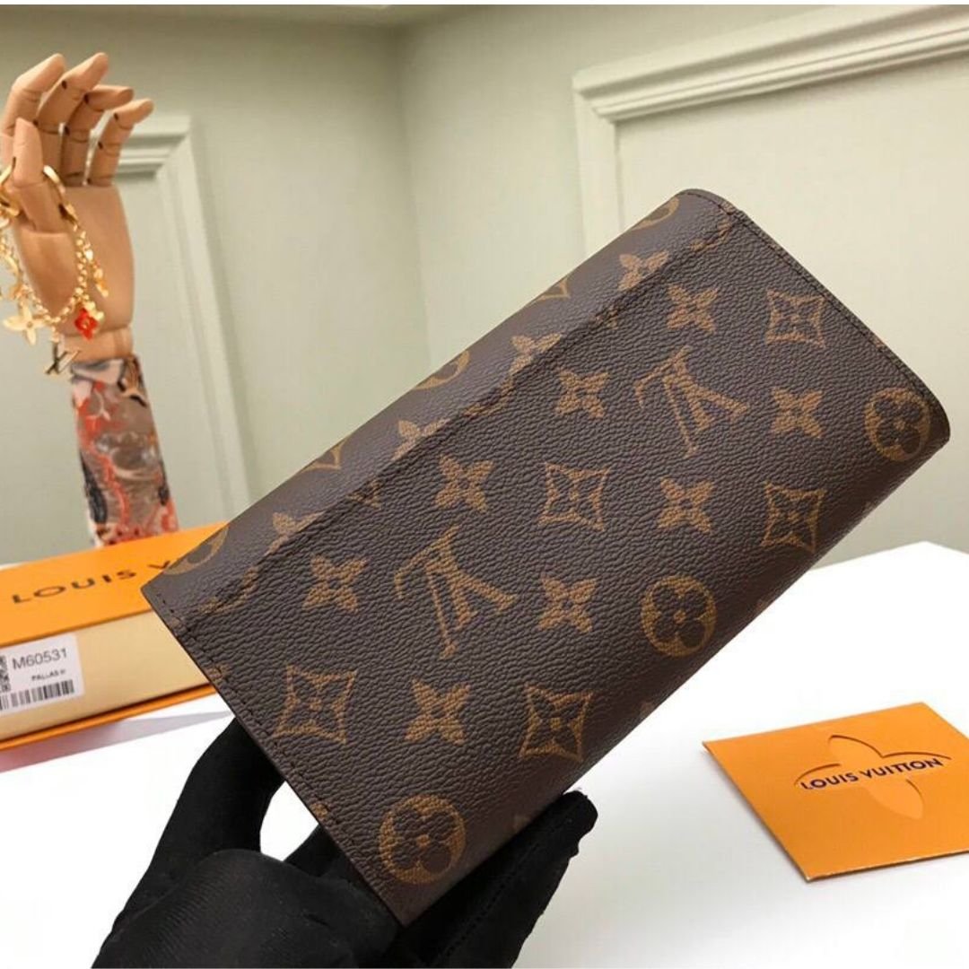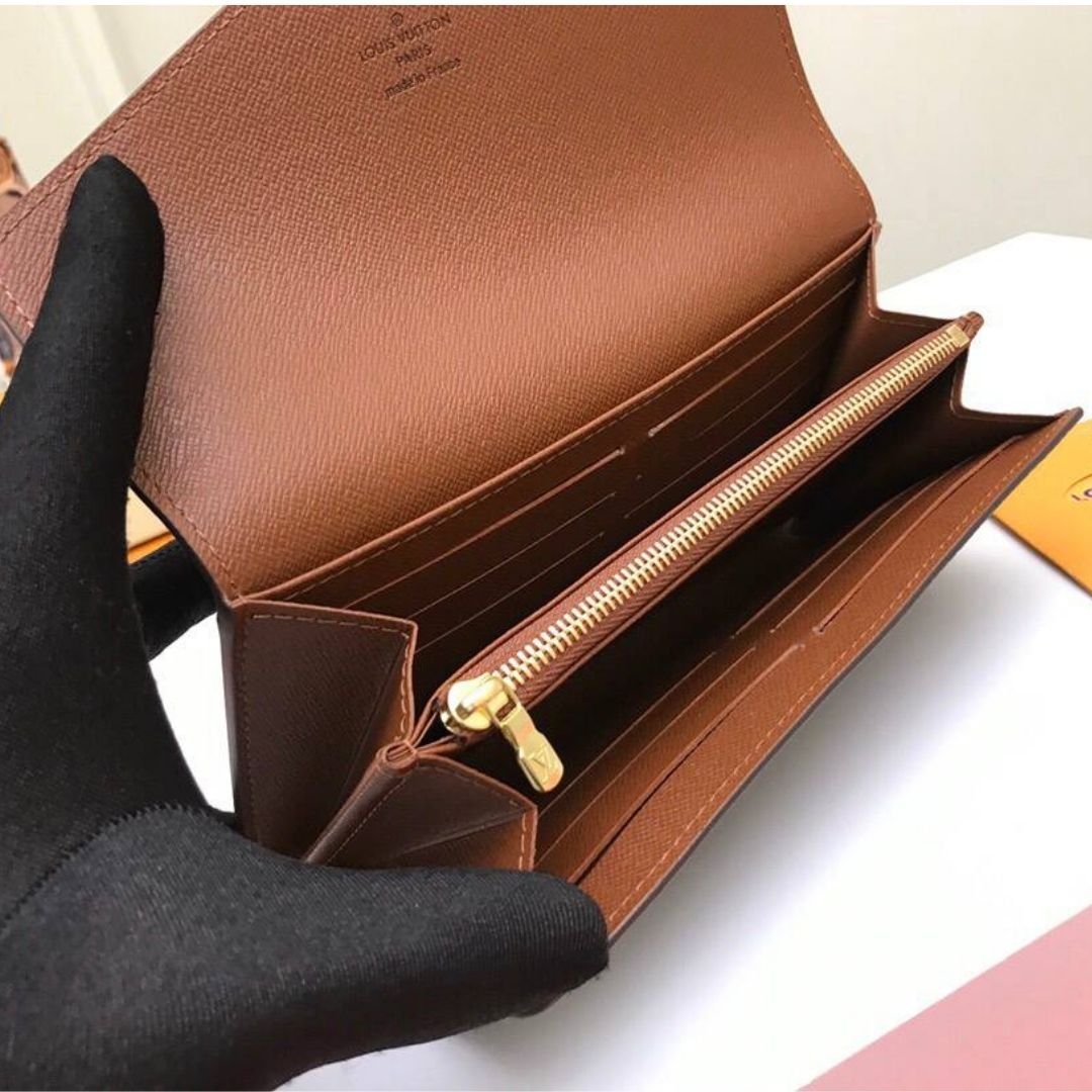 Portafoglio Louis Vuitton Sarah in tela Monogram marrone 19 cm