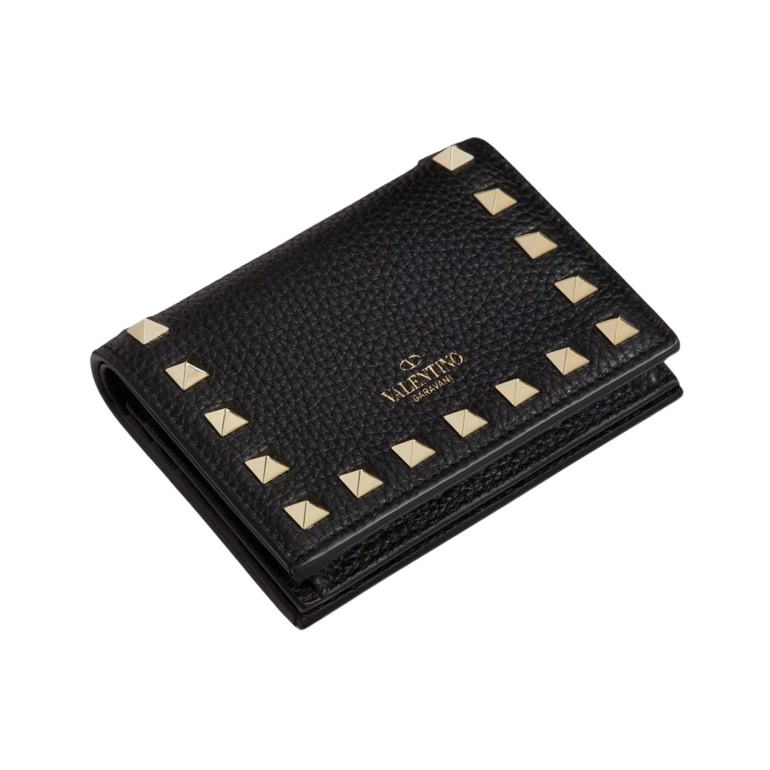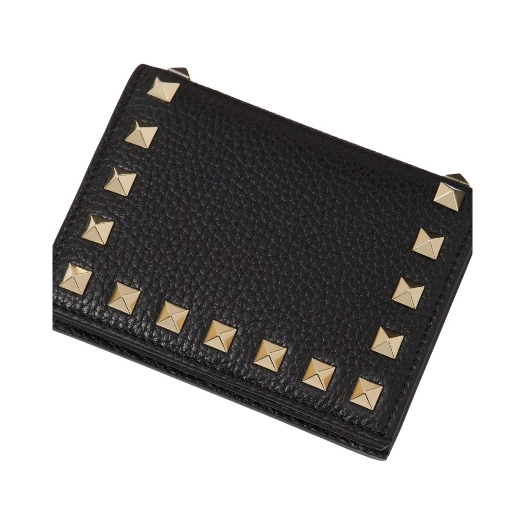Portafoglio piccolo Valentino Rockstud in pelle nera 11,5 cm