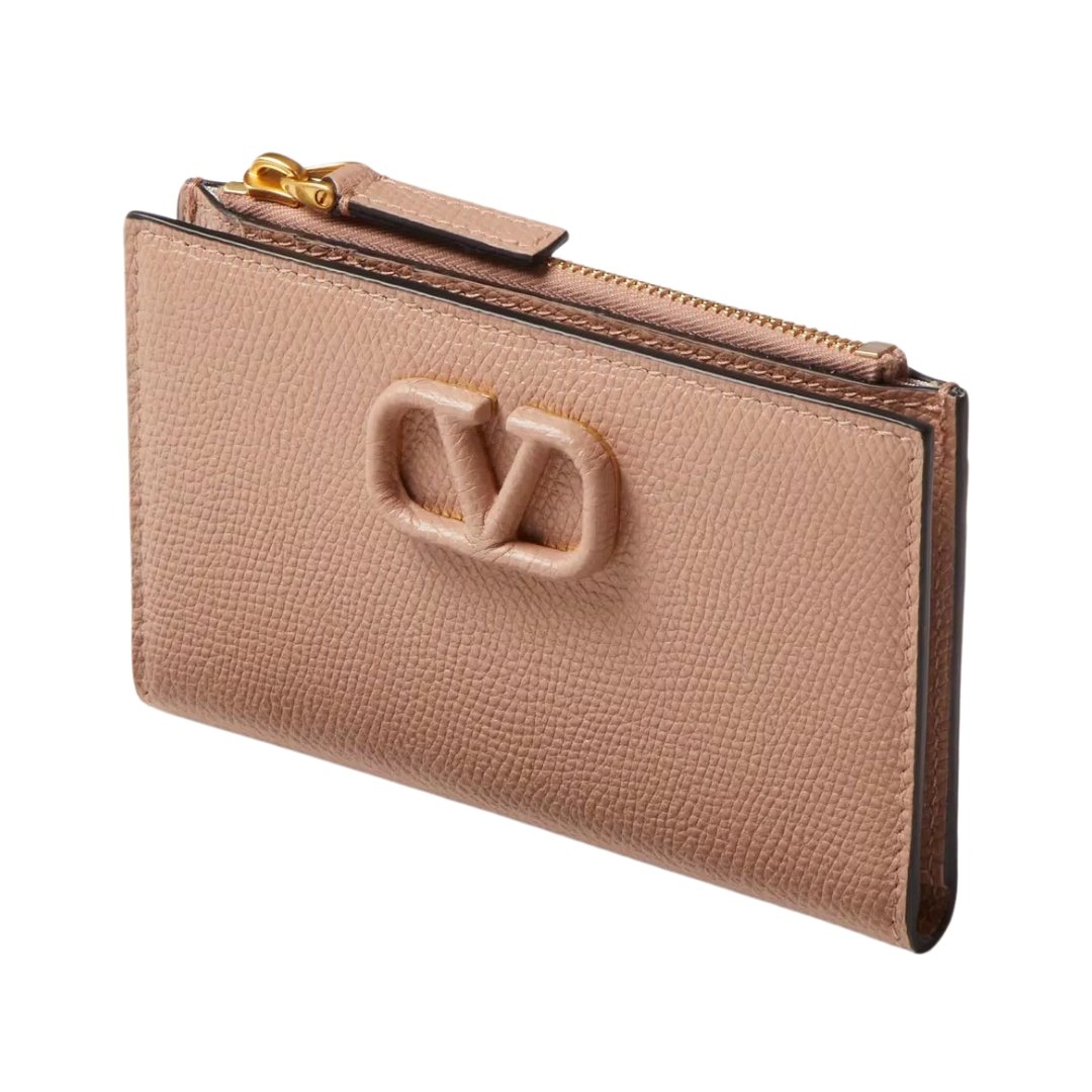 Portacarte Valentino VLogo in pelle rosa cannella 13,5 cm