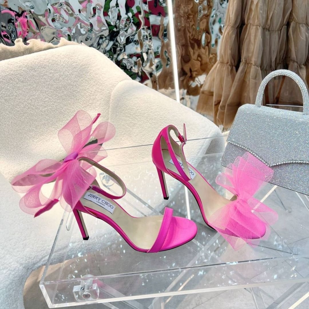 Sandalo con tacco Jimmy Choo Aveline rosa 10 cm