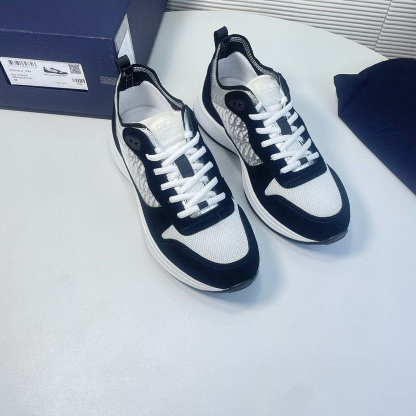 Sneakers Dior B25 Runner in mesh e pelle nera/bianca