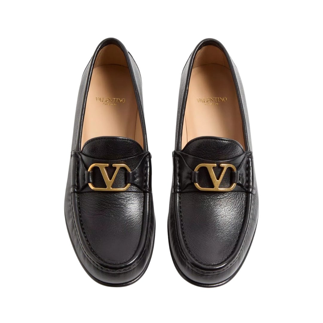 Mocassini Valentino Buffalo in pelle nera con suola alta