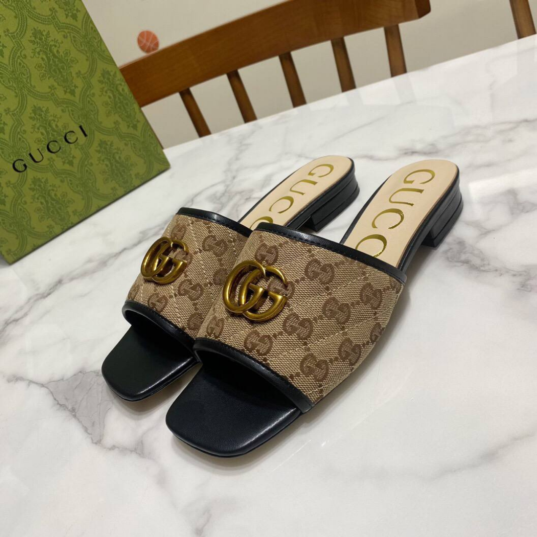 Sandali Gucci Jolie in canvas GG Supreme con profili in pelle nera