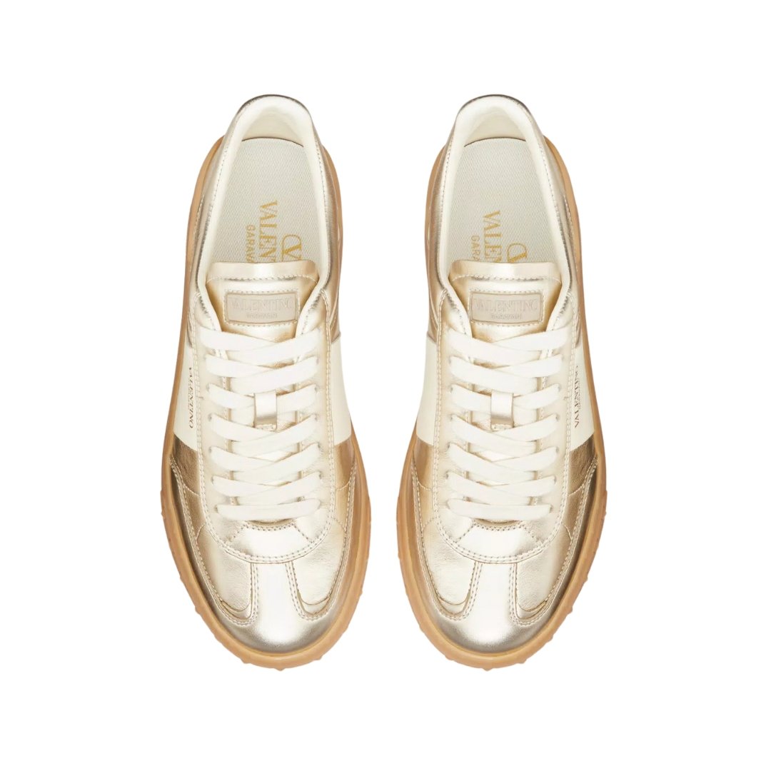 Sneaker Valentino in pelle platino, avorio e ambra