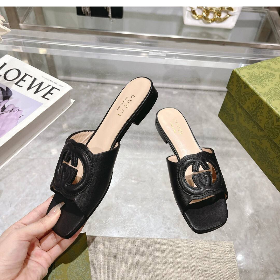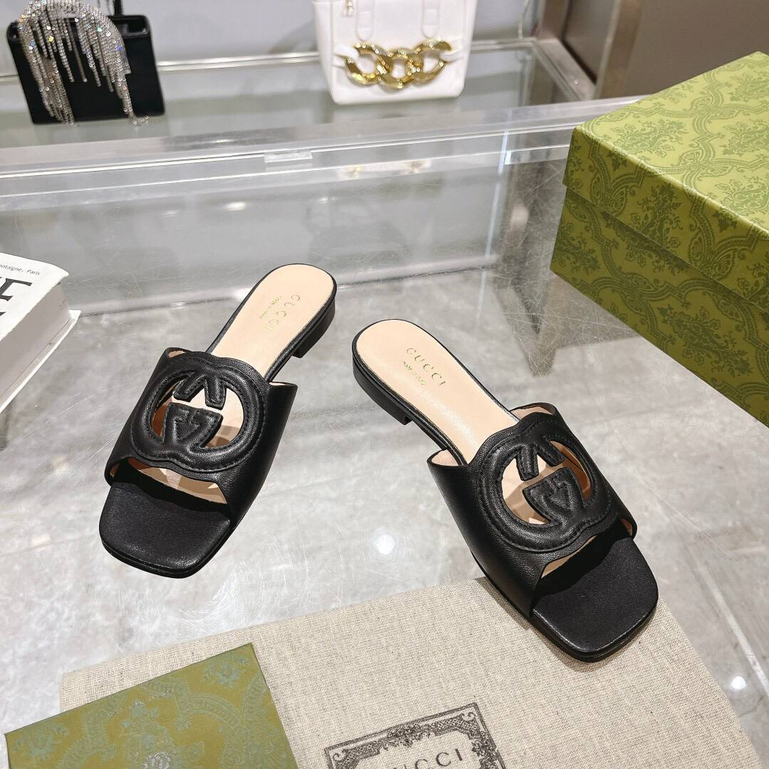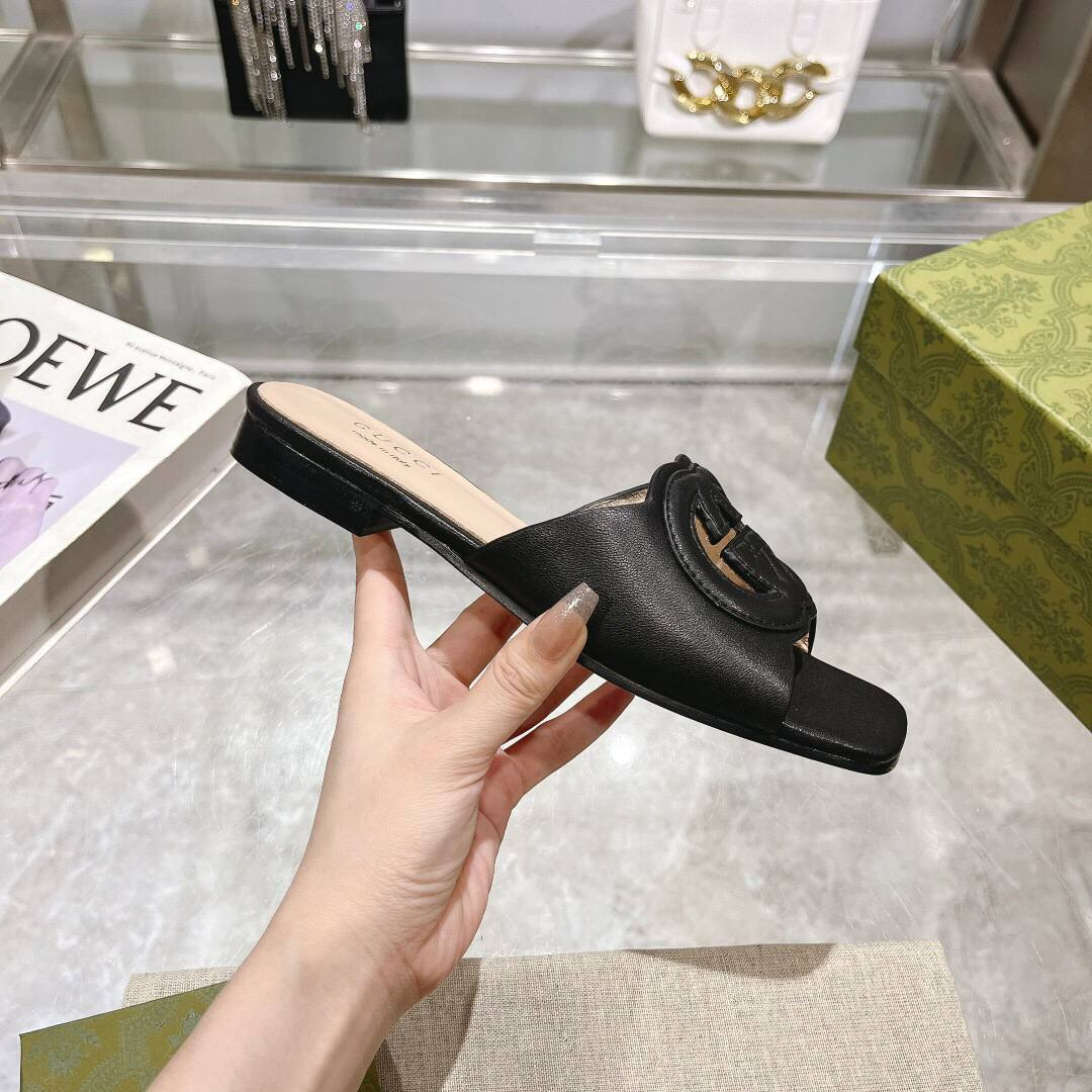 Sandali Hermès Oran in pelle nera con H traforata