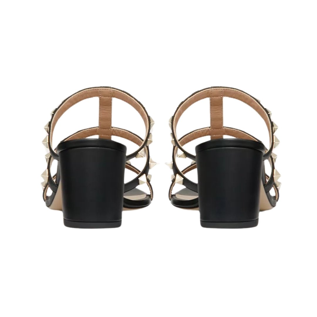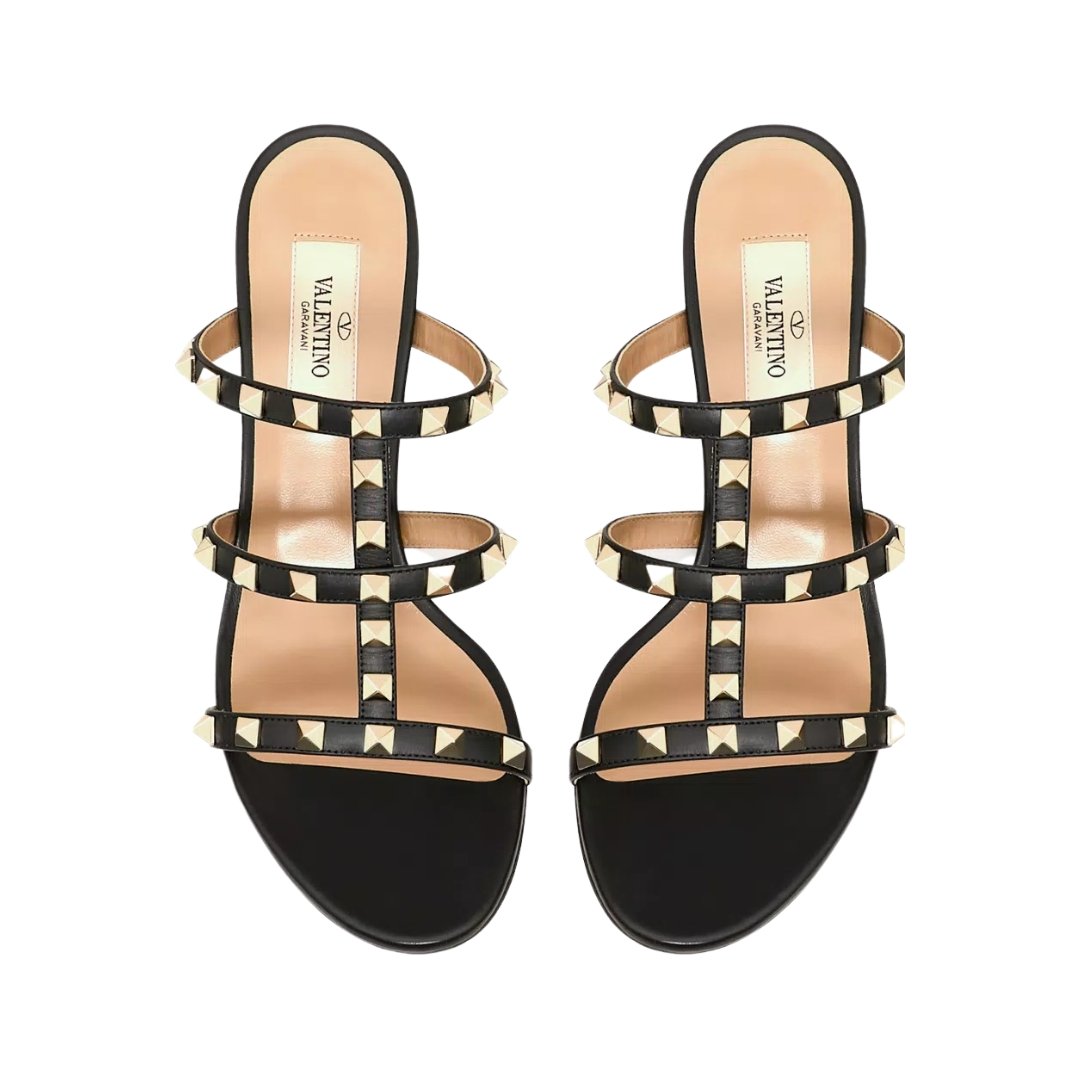 Sandali Valentino Rockstud in pelle nera con tacco 6 cm