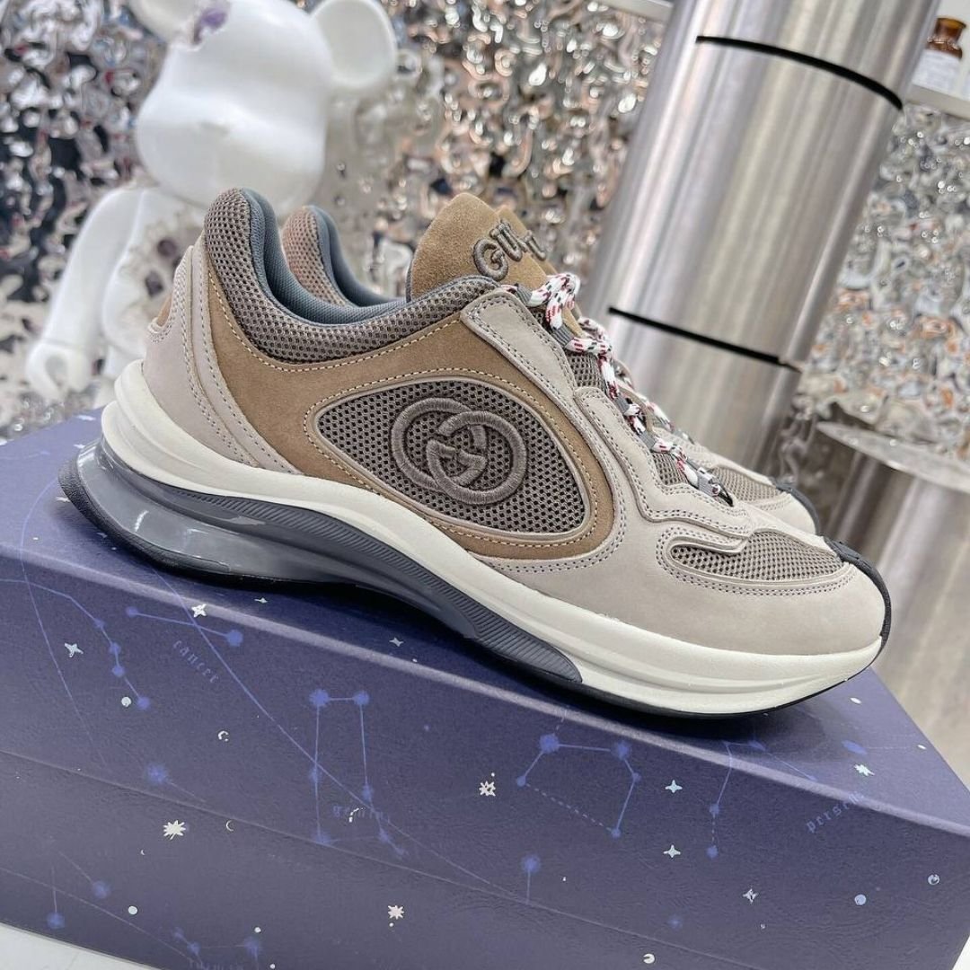 Sneakers Gucci Run in tessuto tecnico bianco/marrone/grigio