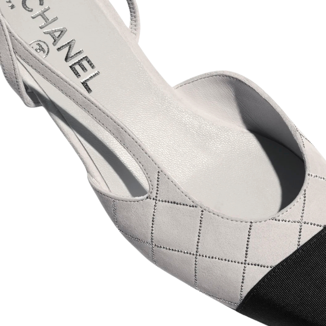 Décolleté slingback Fendi in tessuto ricamato con logo FF