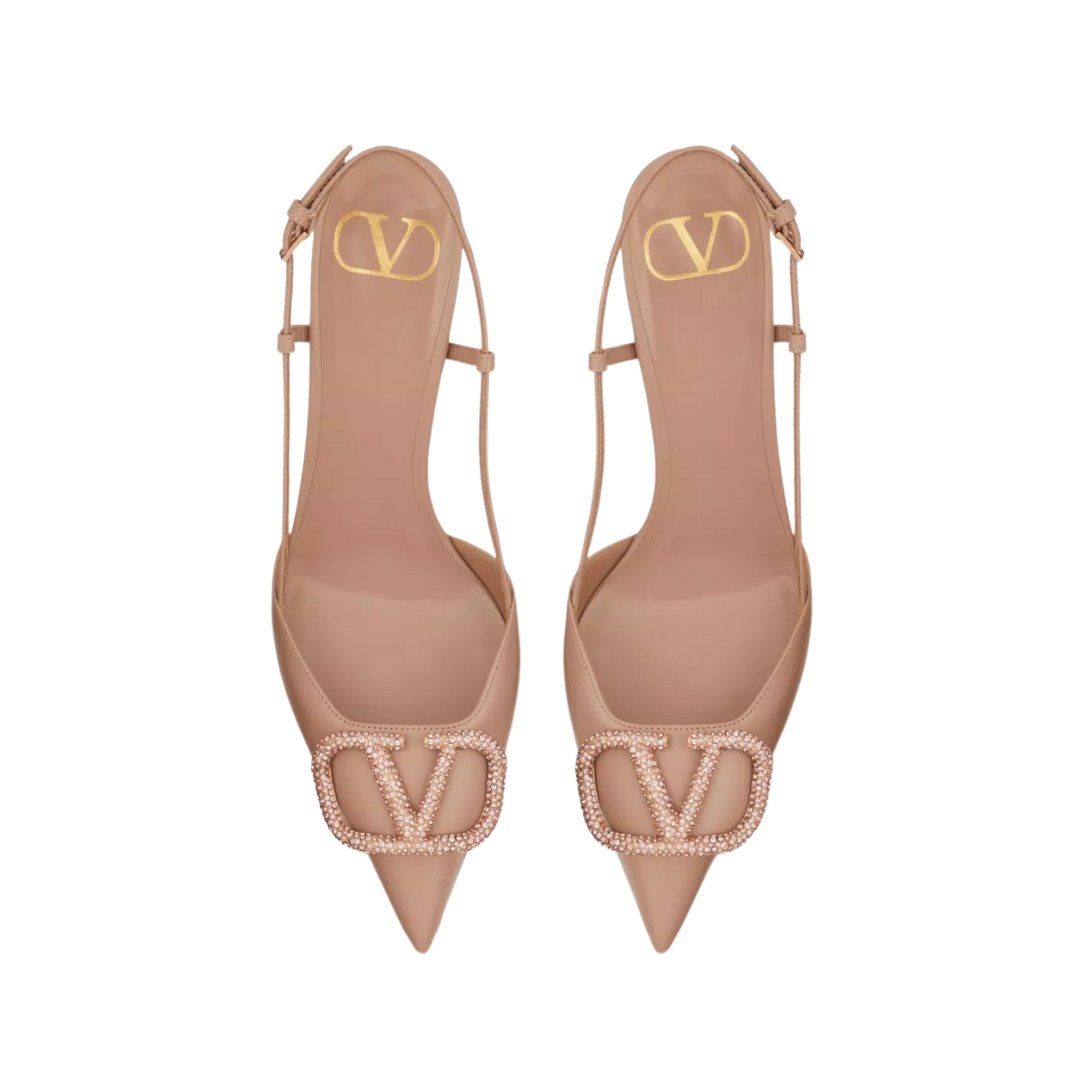 Décolleté slingback Valentino in pelle rosa cannella tacco 8 cm